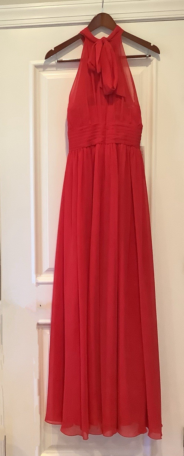 как выглядит Azazie Bridesmaid Dress Maxi Red Size A6 Halter Neck 155143 Formal Dance NWT фото