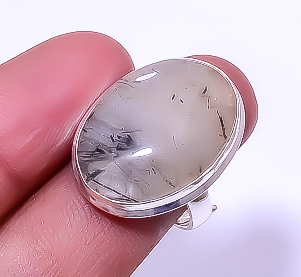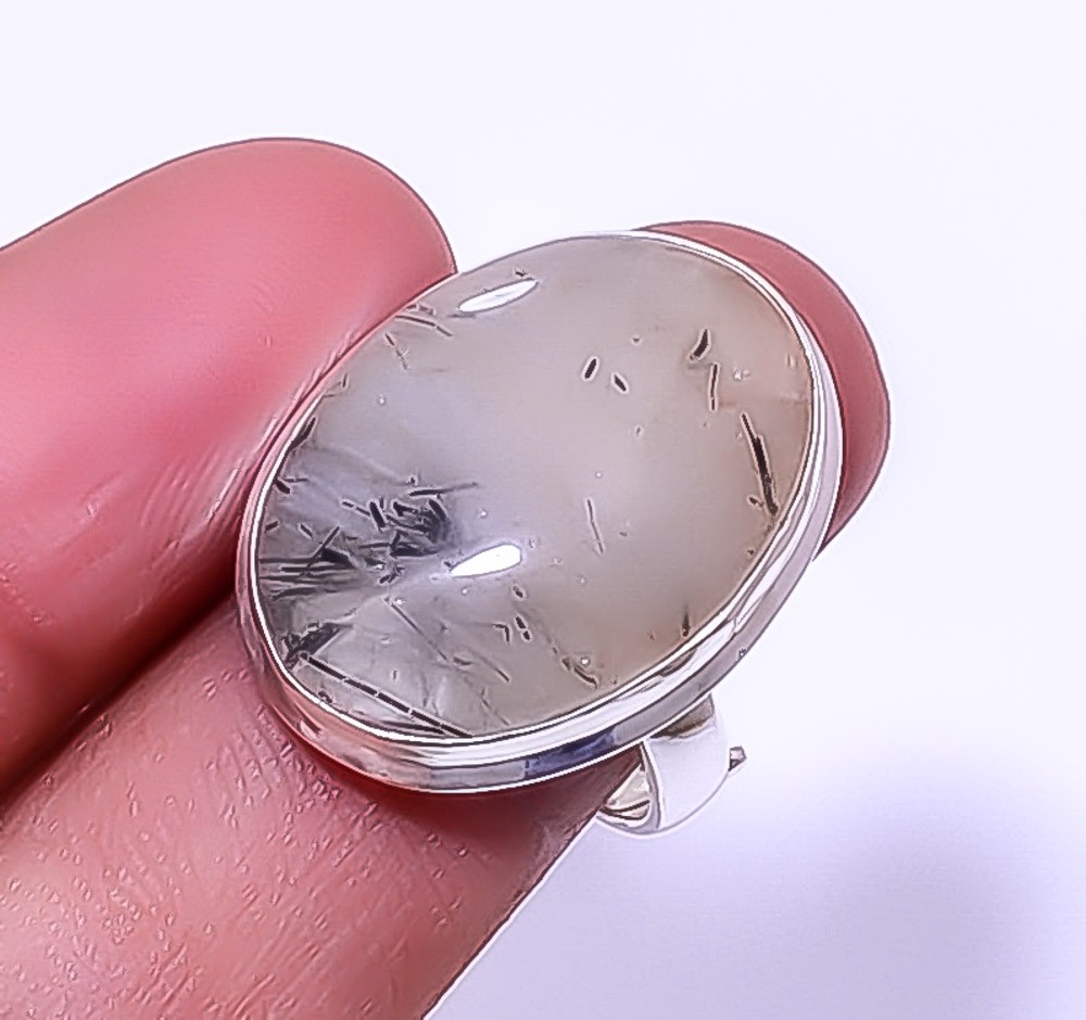 Black Rutilated Quartz - Srilanka 925 Sterling Silver Ring Adjustable A354