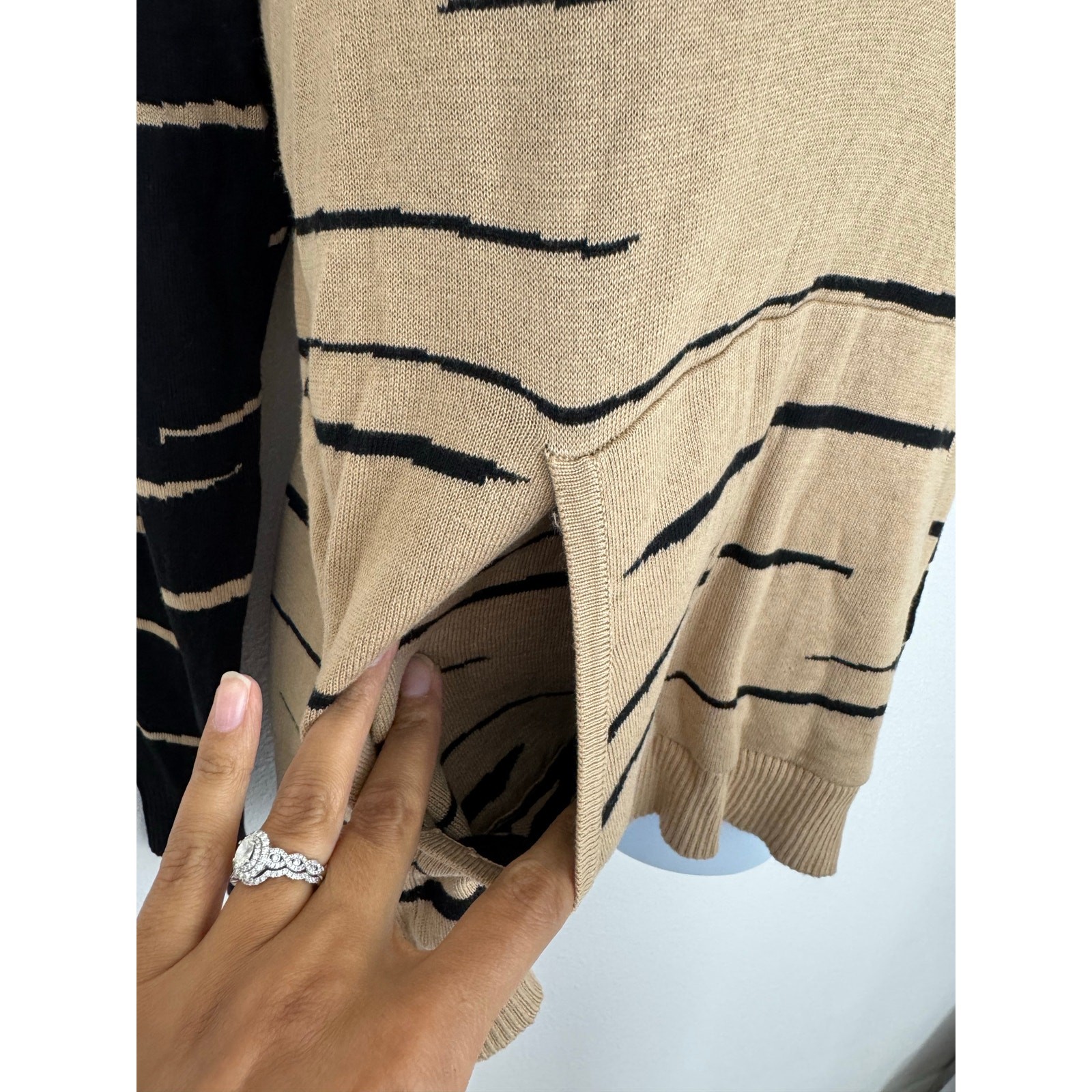 как выглядит Belle by Belldini Camel Black Striped Hooded Sweater Women s Small NWT Knit фото