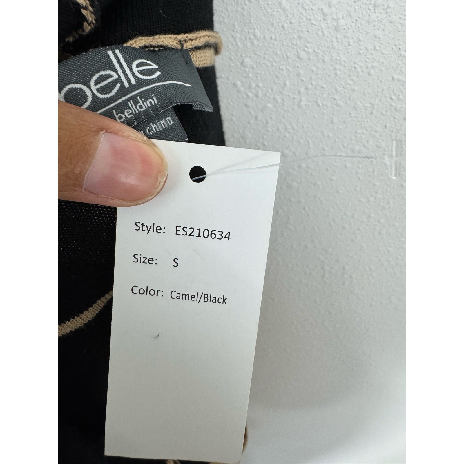 Belle by Belldini Camel Black Striped Hooded Sweater Women s Small NWT Knit