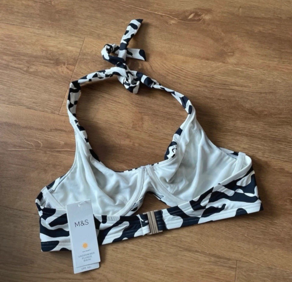 как выглядит Marks Spencer Black Mix Underwired Plunge Bikini Top Size 38D NEW Free Postage фото