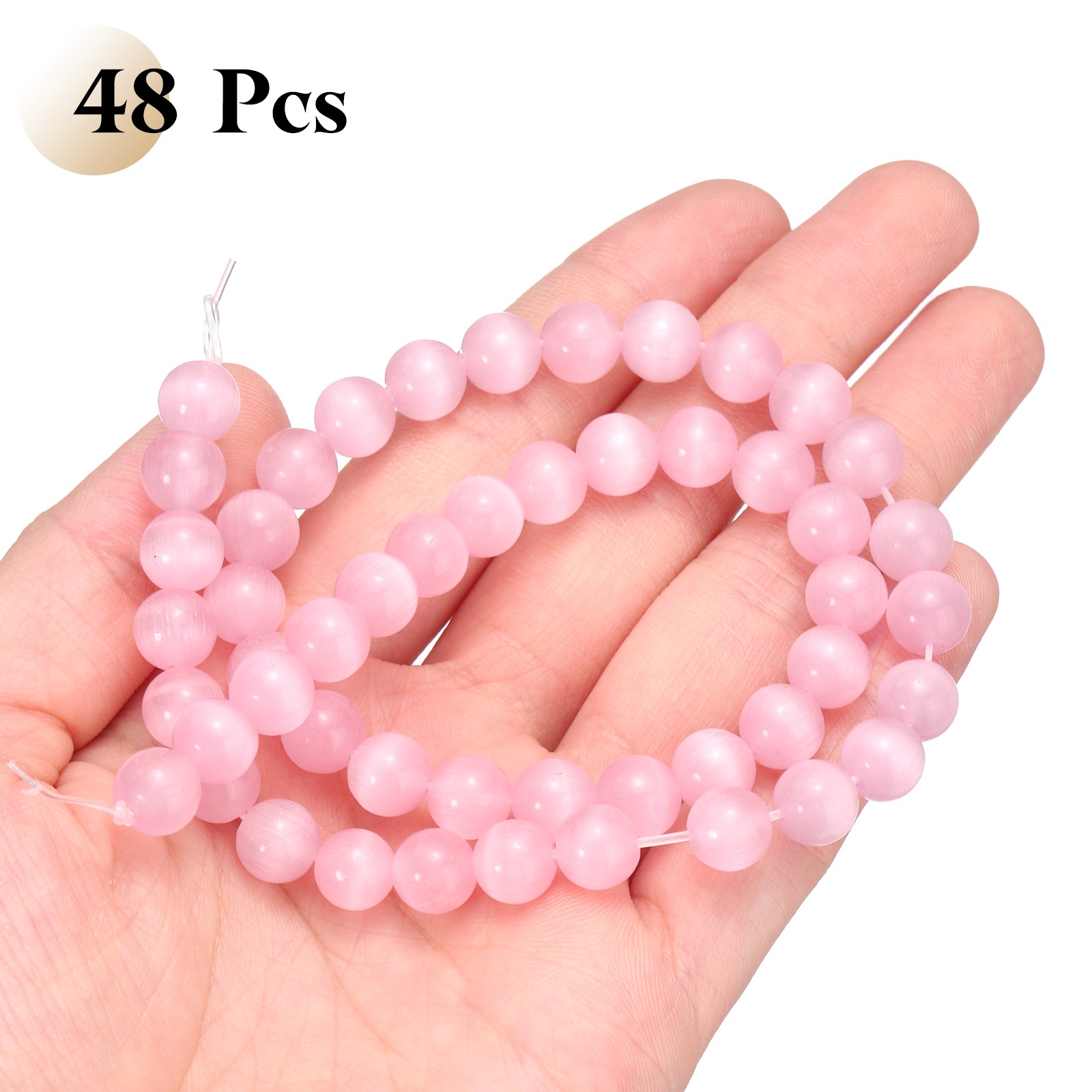 48pcs Pink Cat's Eye Stone Beads 8mm Round Crystal Loose Bead