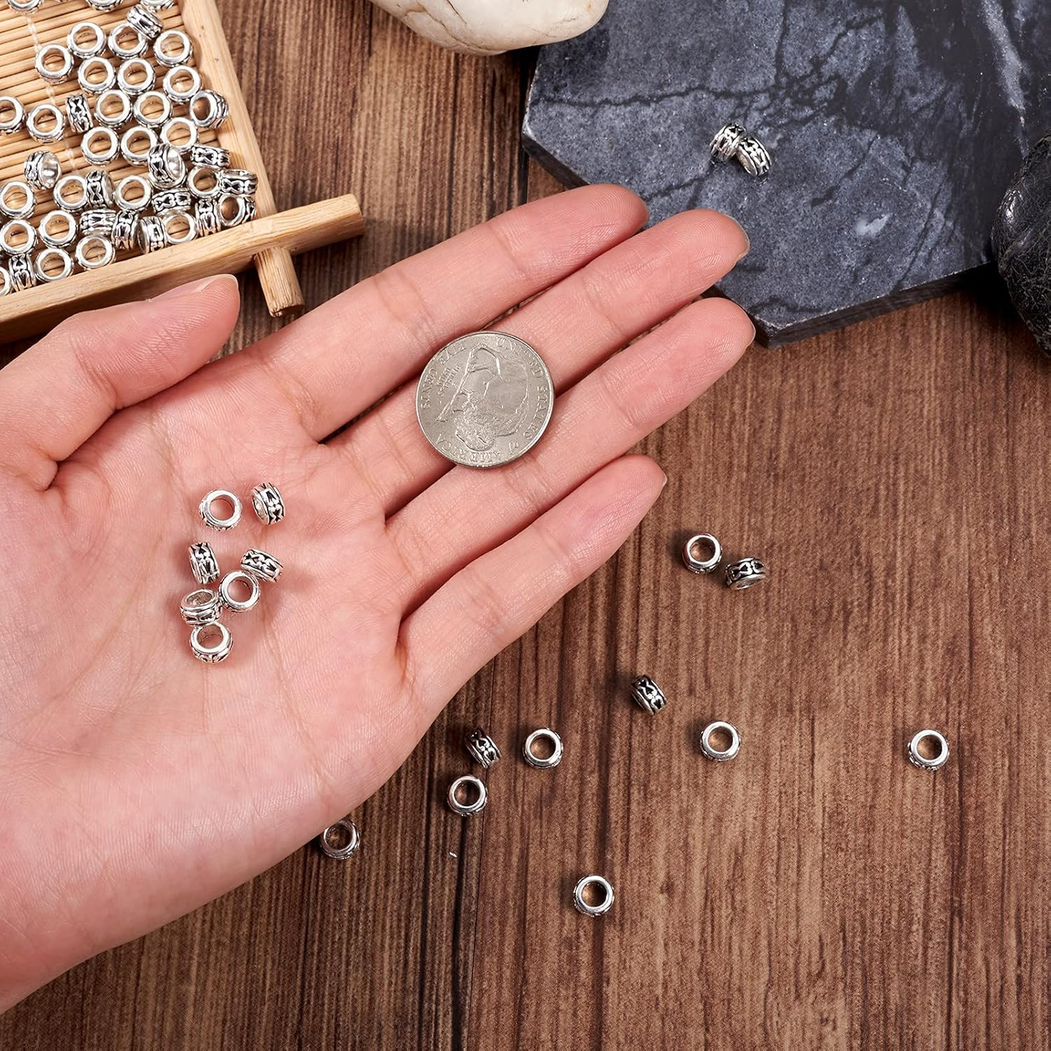как выглядит 100-Piece Tibetan Antique Silver Large Hole Rondelle Spacer Beads 6Mm, 3.5Mm Hol фото