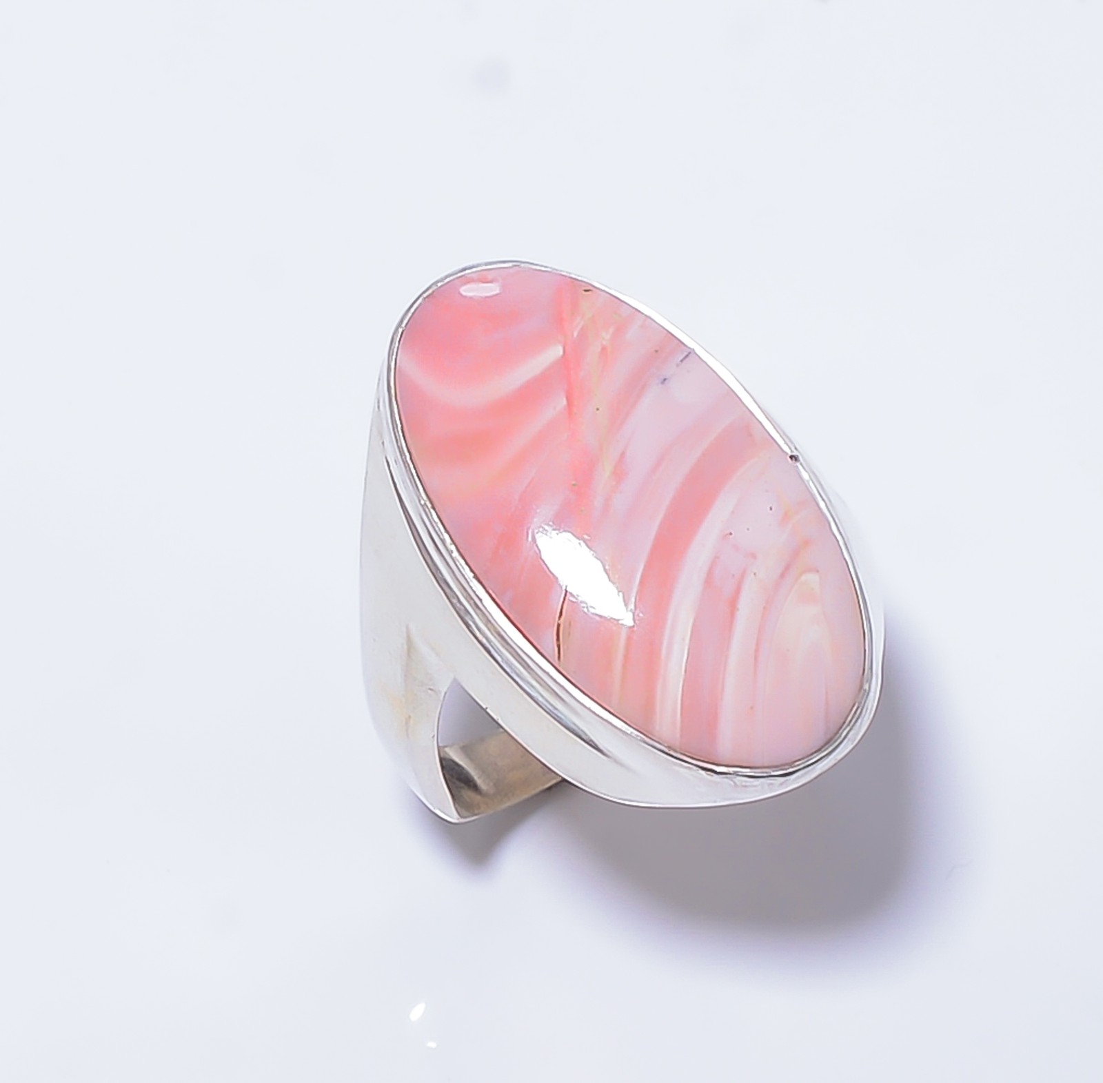 как выглядит Pink Opal - Australia 925 Sterling Silver Solitaire Handmade Ring s.9 R7635-421 фото