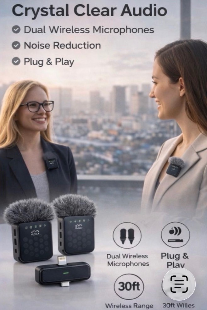 QY66 Wireless Lavalier Microphone With Dual Mics And Receivers