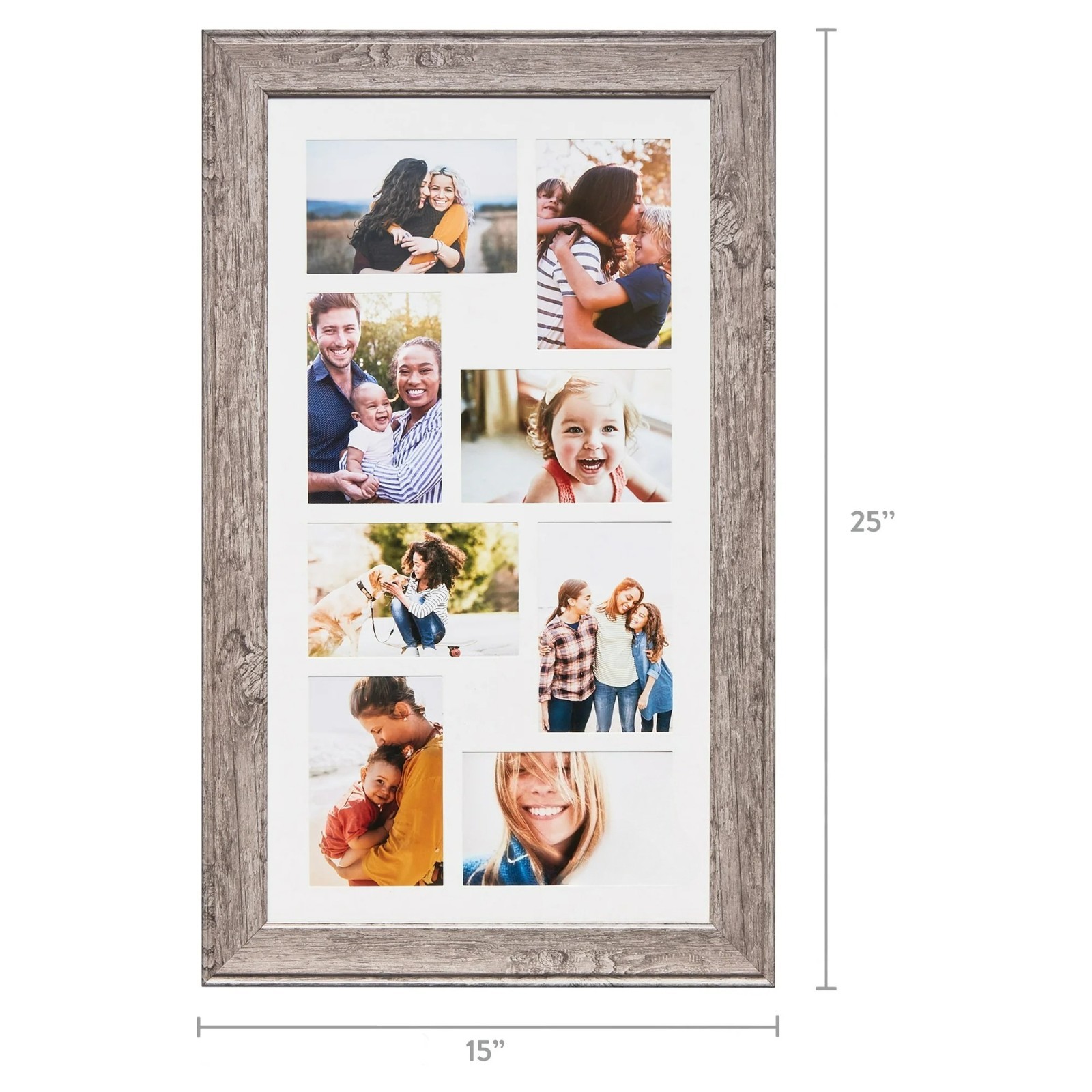 4x6 Rustic Wood Bevel 8 Photo Collage Frame, Wall Hanging Display