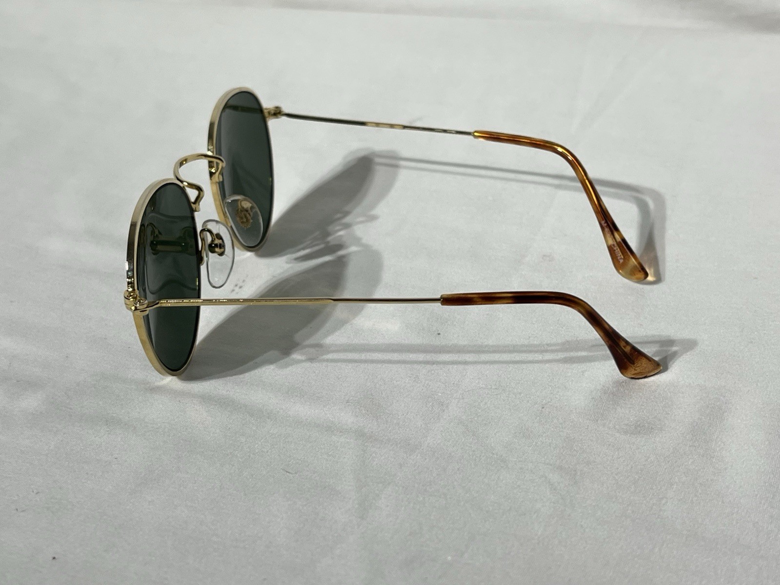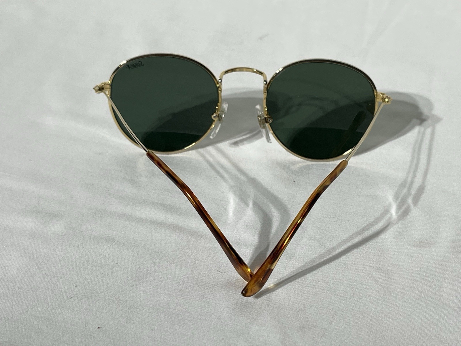 как выглядит Vintage Solar-X Sunglasses UV Protection Classic Round Green Lense Gold Frame фото