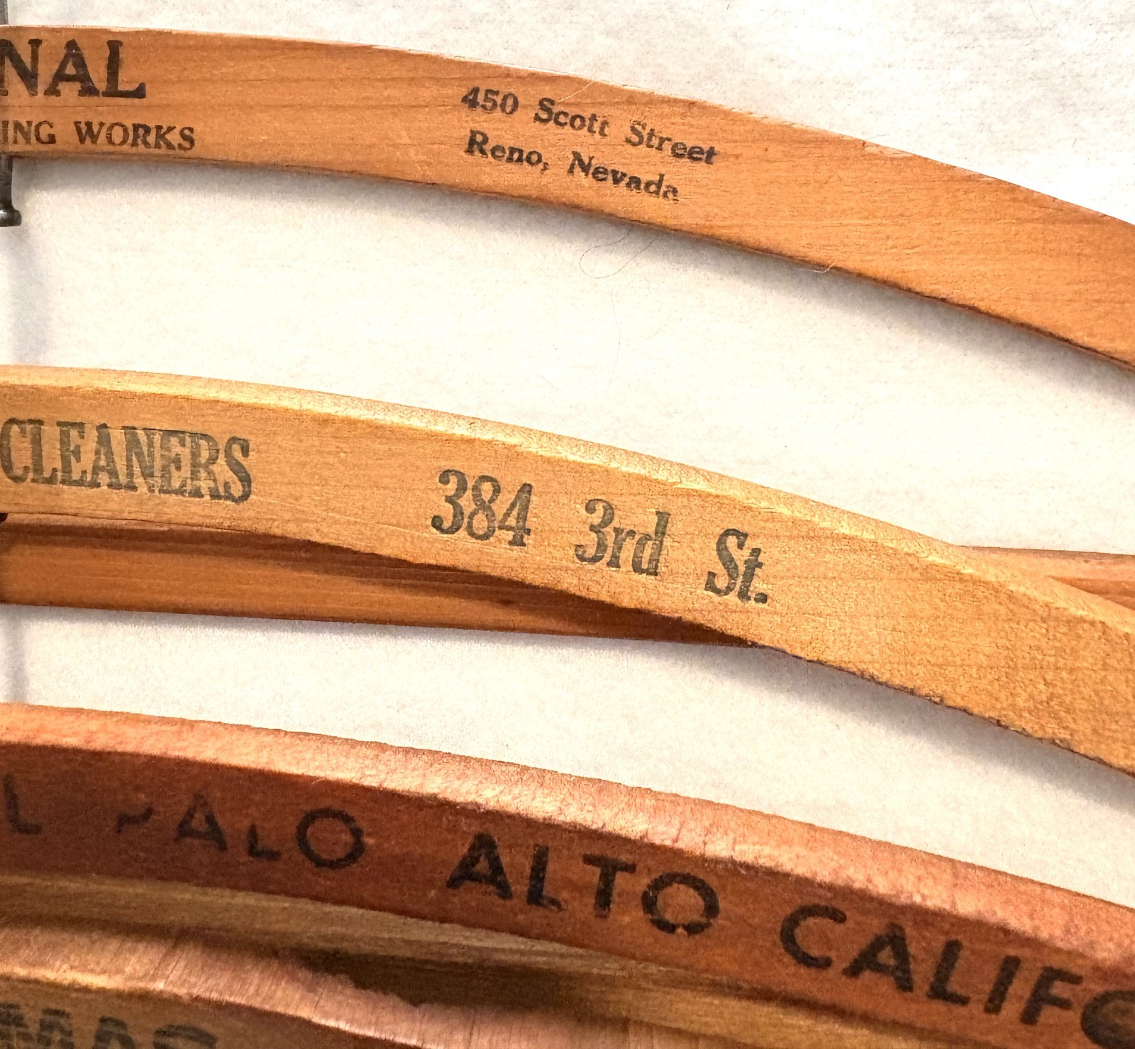 7 Wooden Ad Clothes Hangers Sacto SF Oakland San Mateo Palo Alto Reno