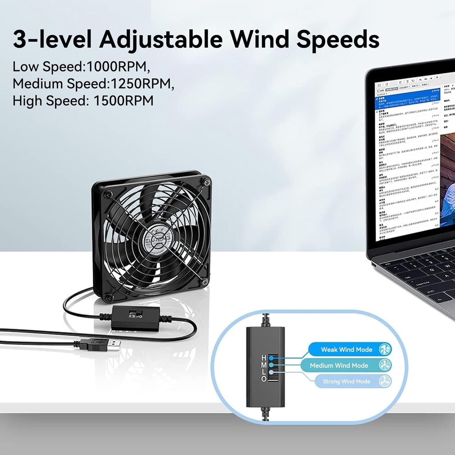 120mm Fan With 3 Speed 5V USB Powered Case Fan 1500PRM Gaming PC Portable Coo...