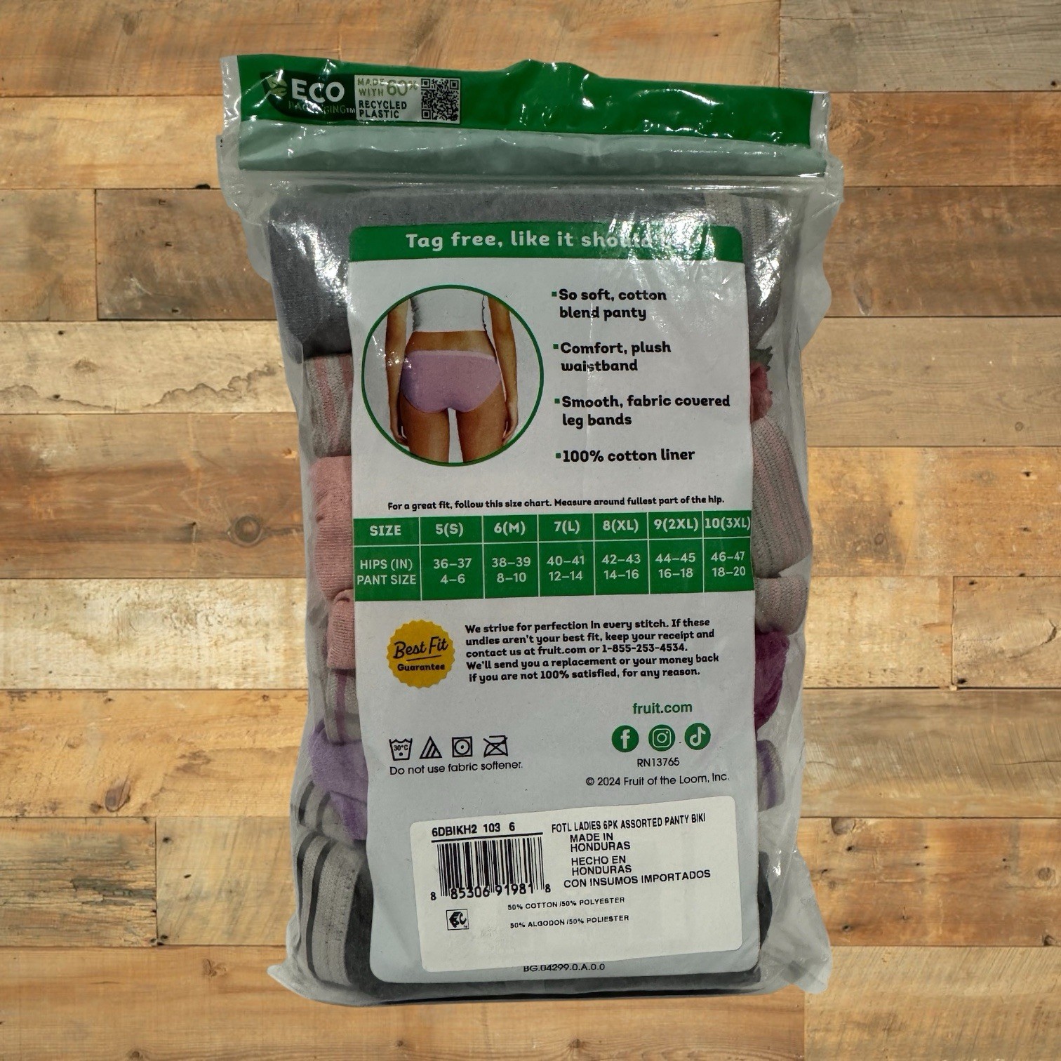 Fruit of the Loom Women's Heather Bikinis Underwear 6-Pack, Assorted, Size 6/M