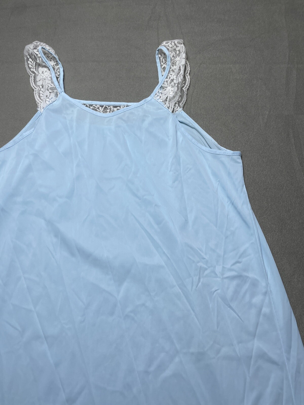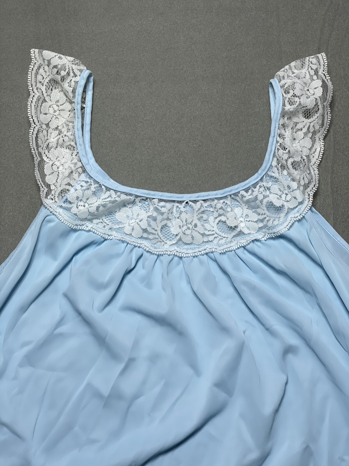 Vtg Lingerie Lace Nightie Teddy Slip Dress L USA Light Blue Nightgown Bridal