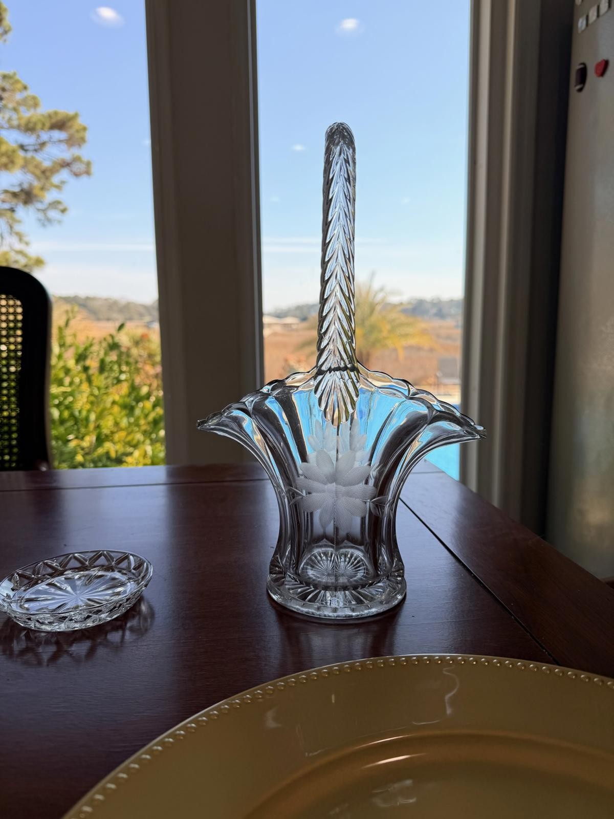 как выглядит Vintage Duncan and Miller Glass Bridal Basket- Large фото