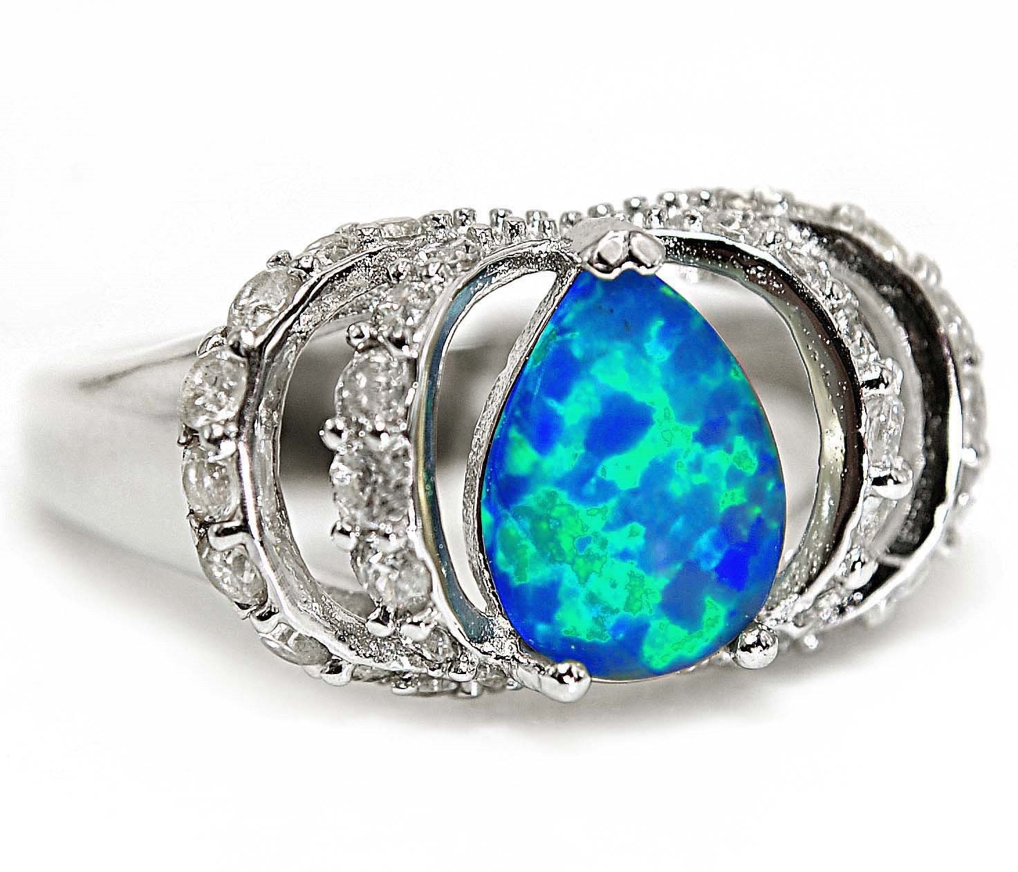 как выглядит Natural Blue Fire Opal Topaz 925 Solid Sterling Silver Ring Jewelry Sz 6 фото