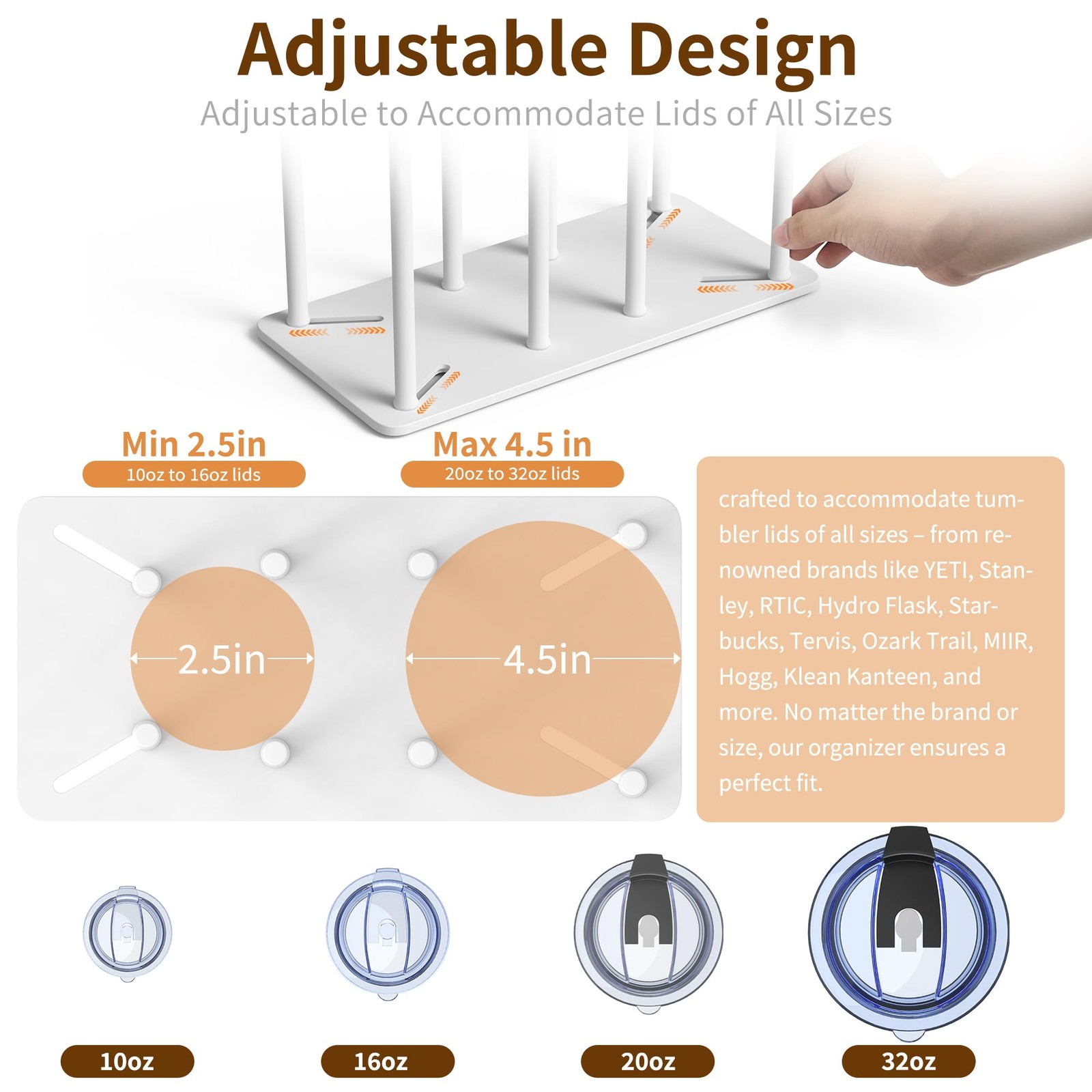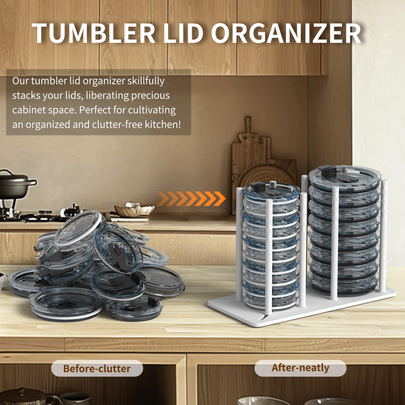 Adjustable Tumbler Lid Organizer - Holds up to 16 Lids, Disposable Cup and Li...