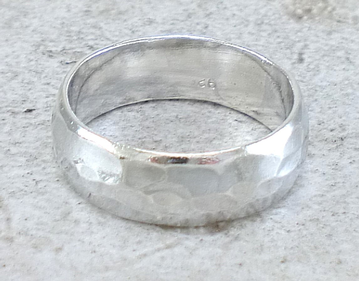 как выглядит 925 STERLING SILVER 8MM HAMMERED BAND RING size 9 style r3421 фото