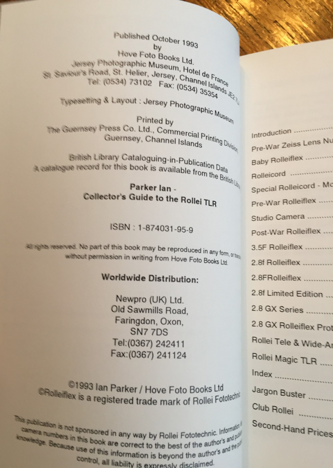 • Complete Rollei TLR Collector's Guide Cameras 1929 to 1994 Ian Parker VGC