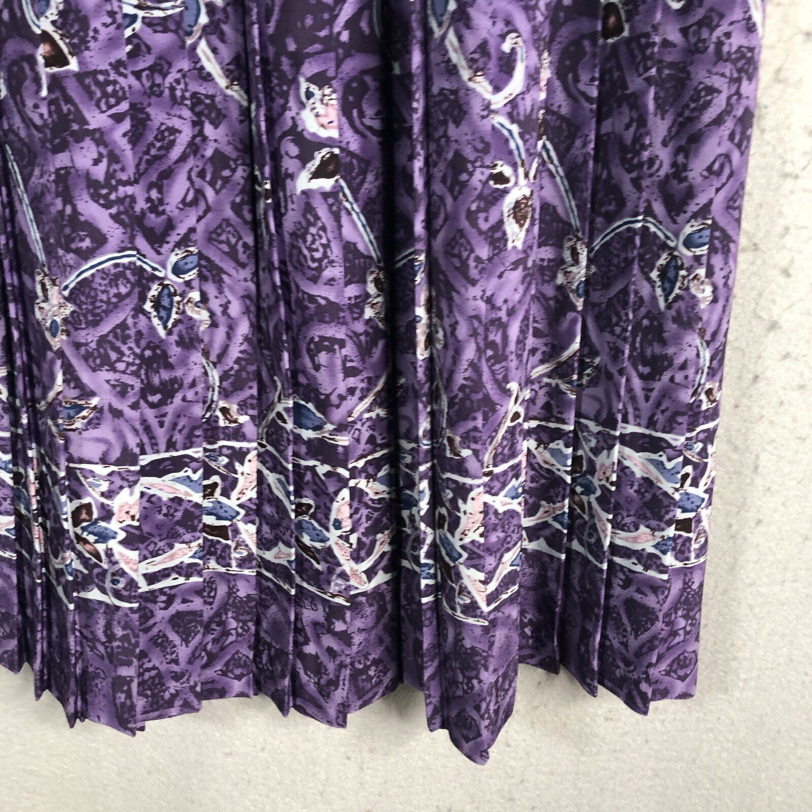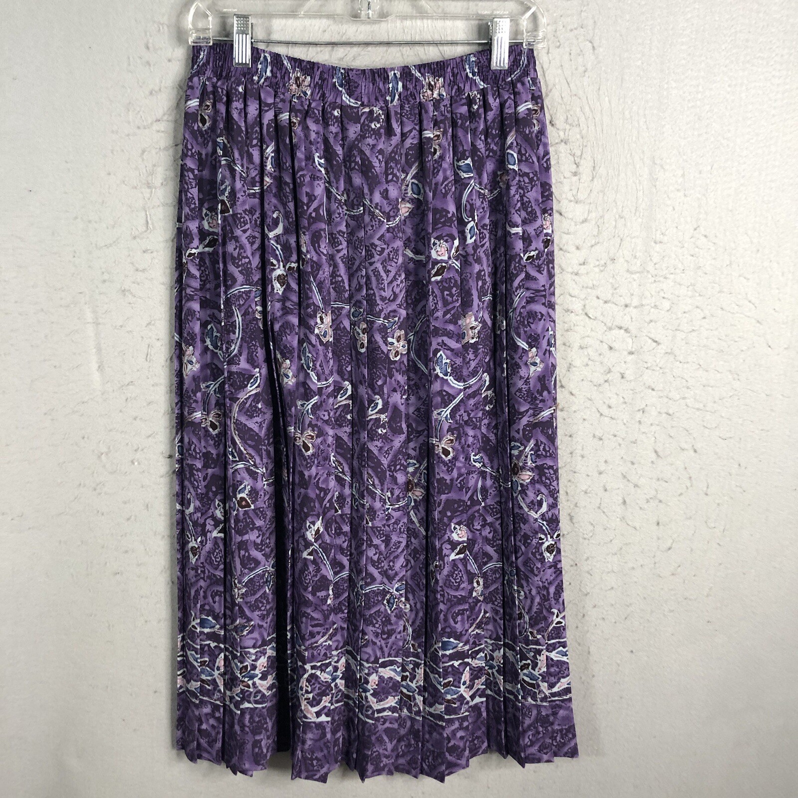 Vintage Purple Midi Skirt Womens 14 Pleated Art to Wear Retro Mod Artsy Boho
