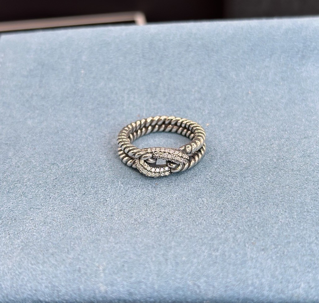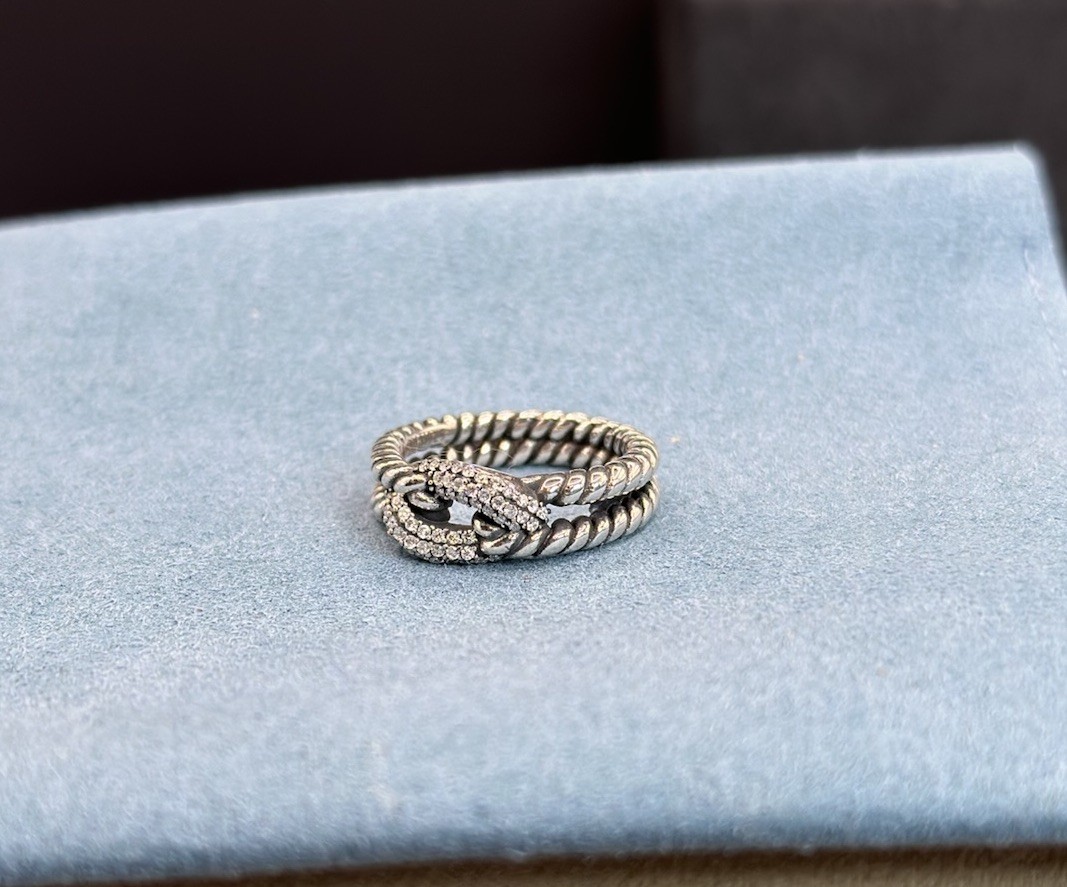 как выглядит David Yurman 925 Sterling Silver Three Row Diamond Cable Loop Ring Size 6 фото