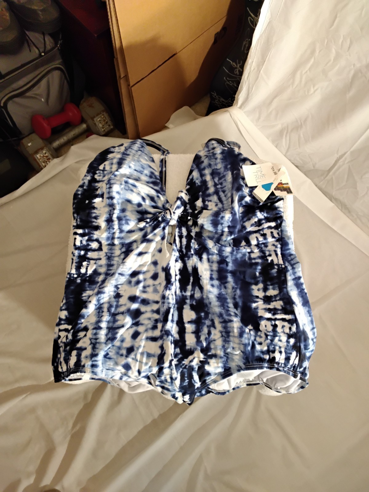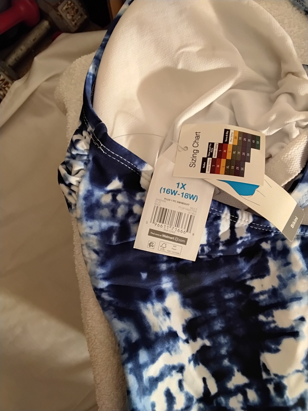 Time And Tru Women's Plus Size 1X Blue Tie Dye One Piece Swimsuit