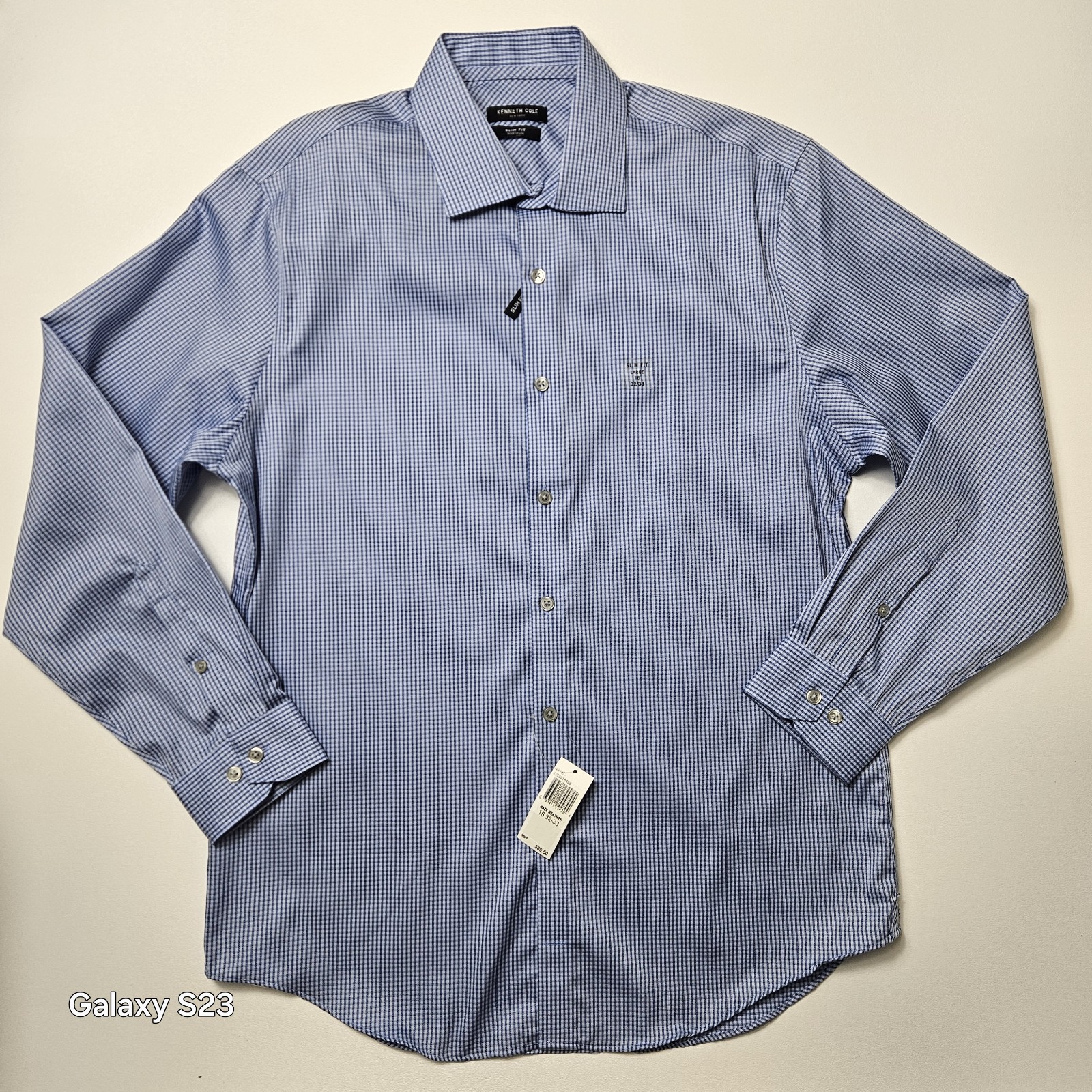 как выглядит Nwt KENNETH COLE Mens Dress Shirt Size 16 32/33 Blue Non Iron Slim Fit Haze фото