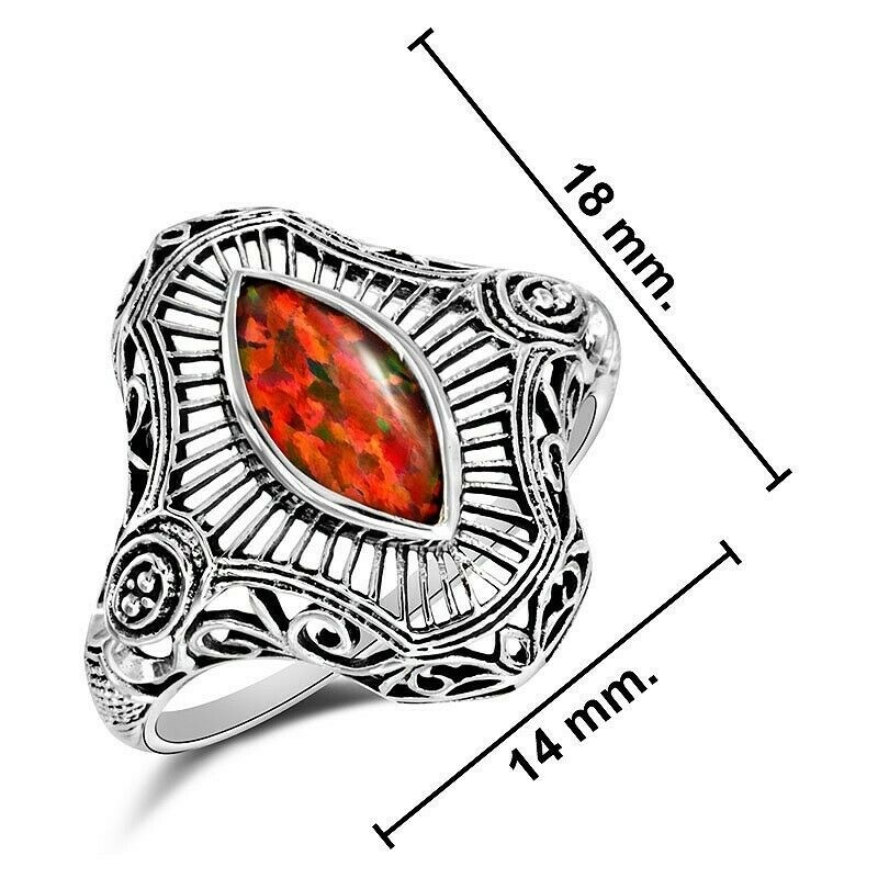 1CT Natural Red Fire Opal 925 Sterling Silver Filigree Ring Jewelry Sz 8 ZF-2