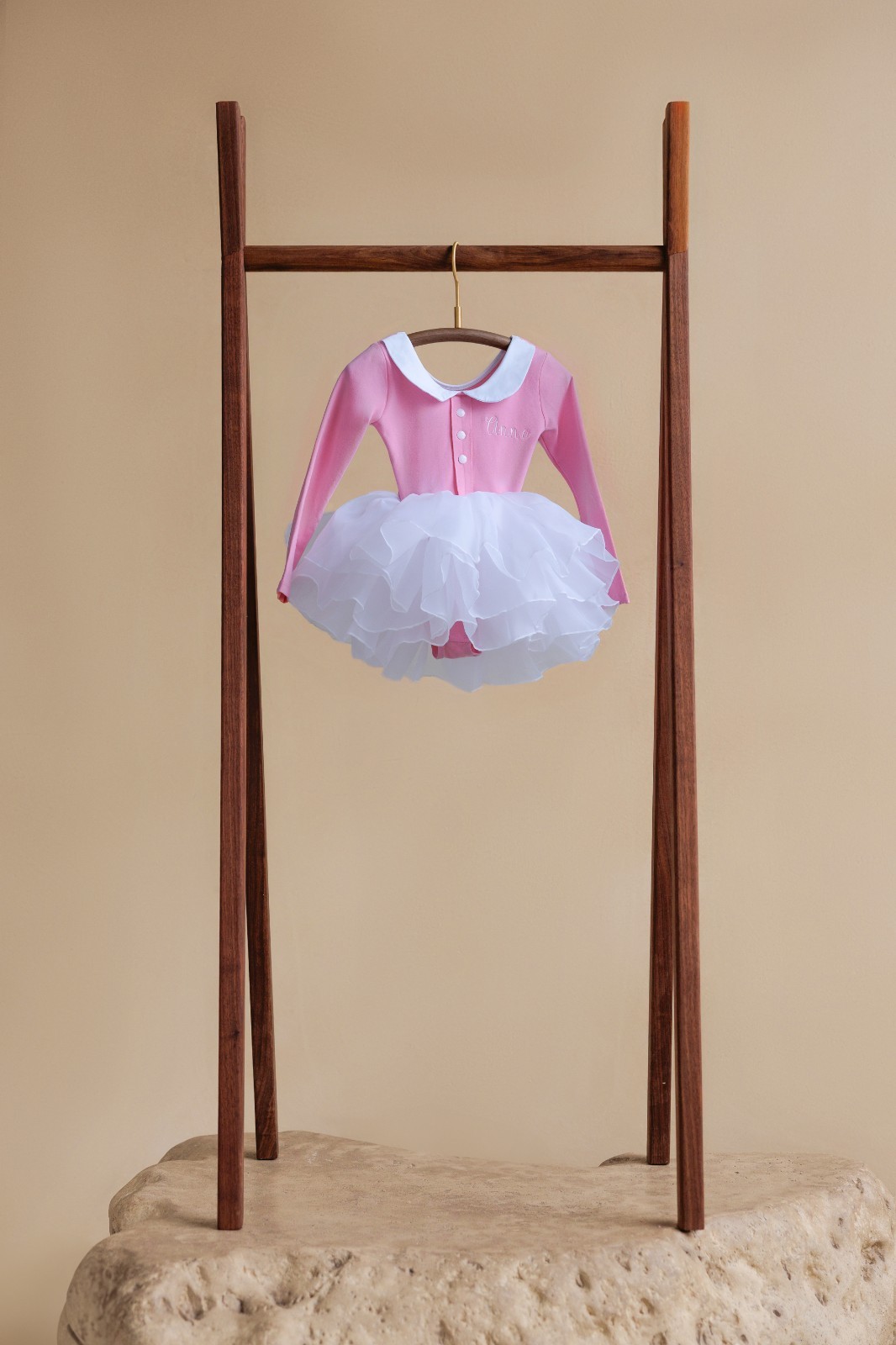 Personalized Pink Tutu Dress Girls Ballet Leotard White Collar