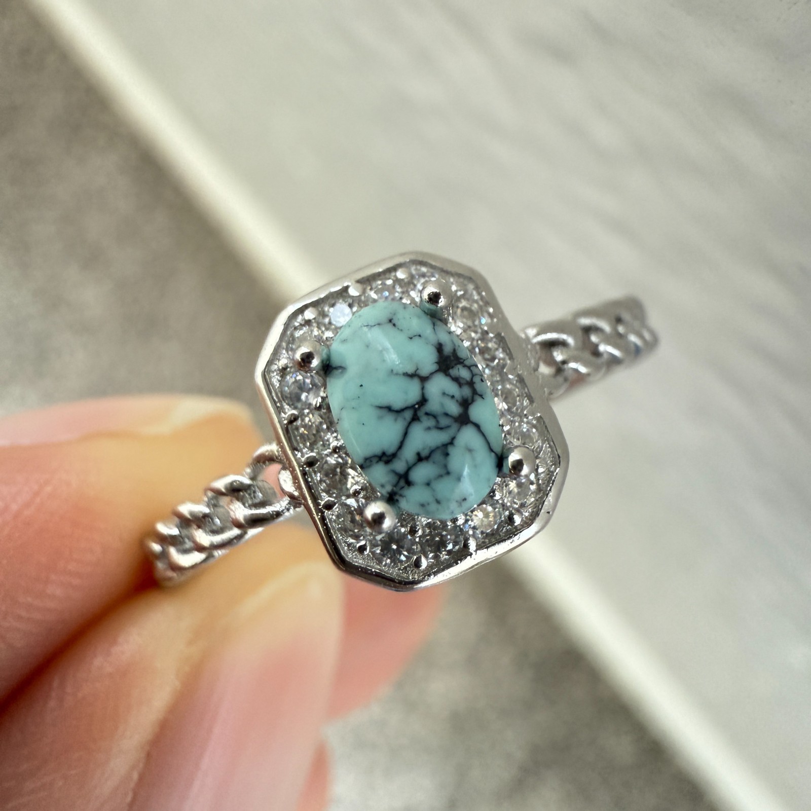 как выглядит 925 Sterling Silver Ring 5x3mm Natural Blue Turquoise Gemstone Zircon Jewelry фото