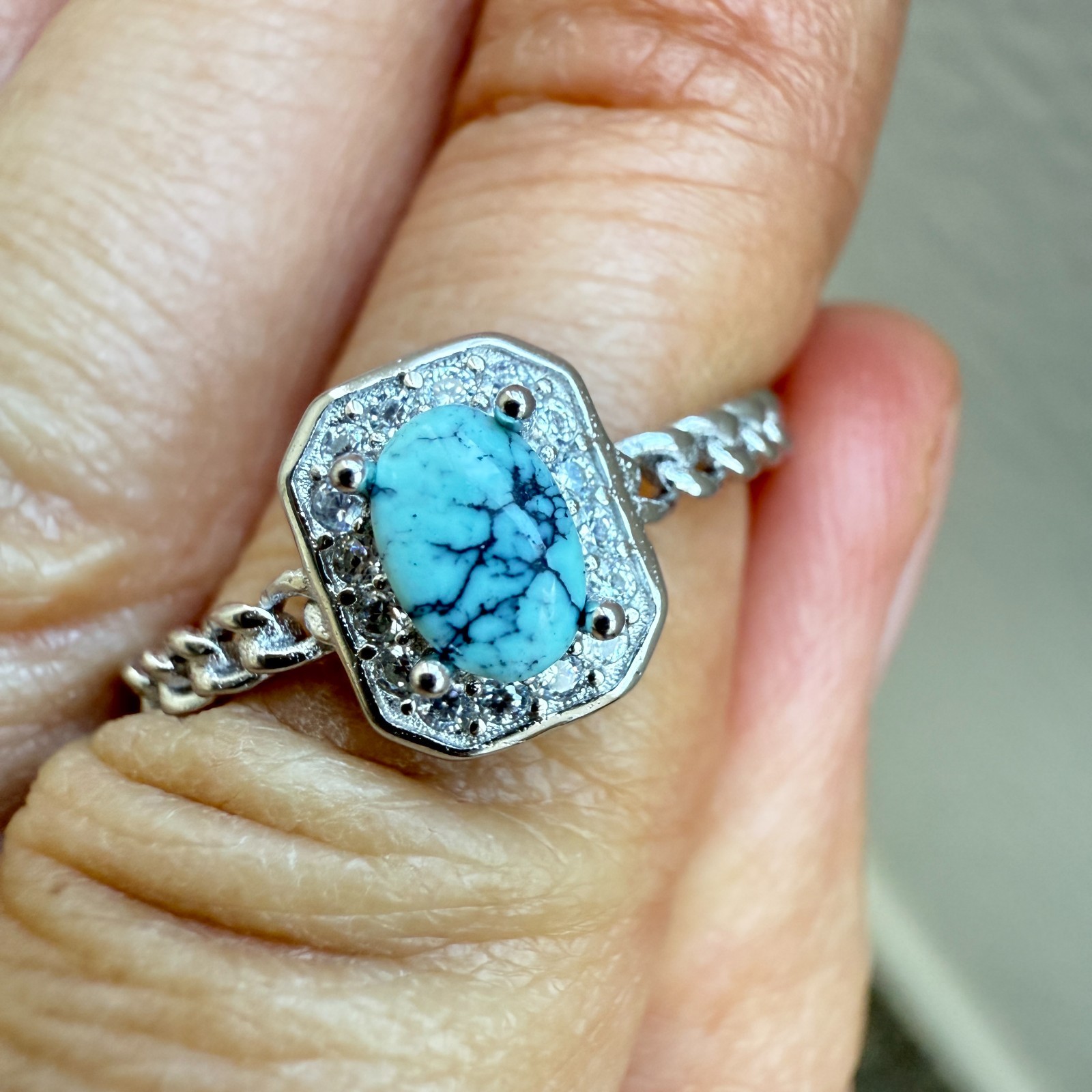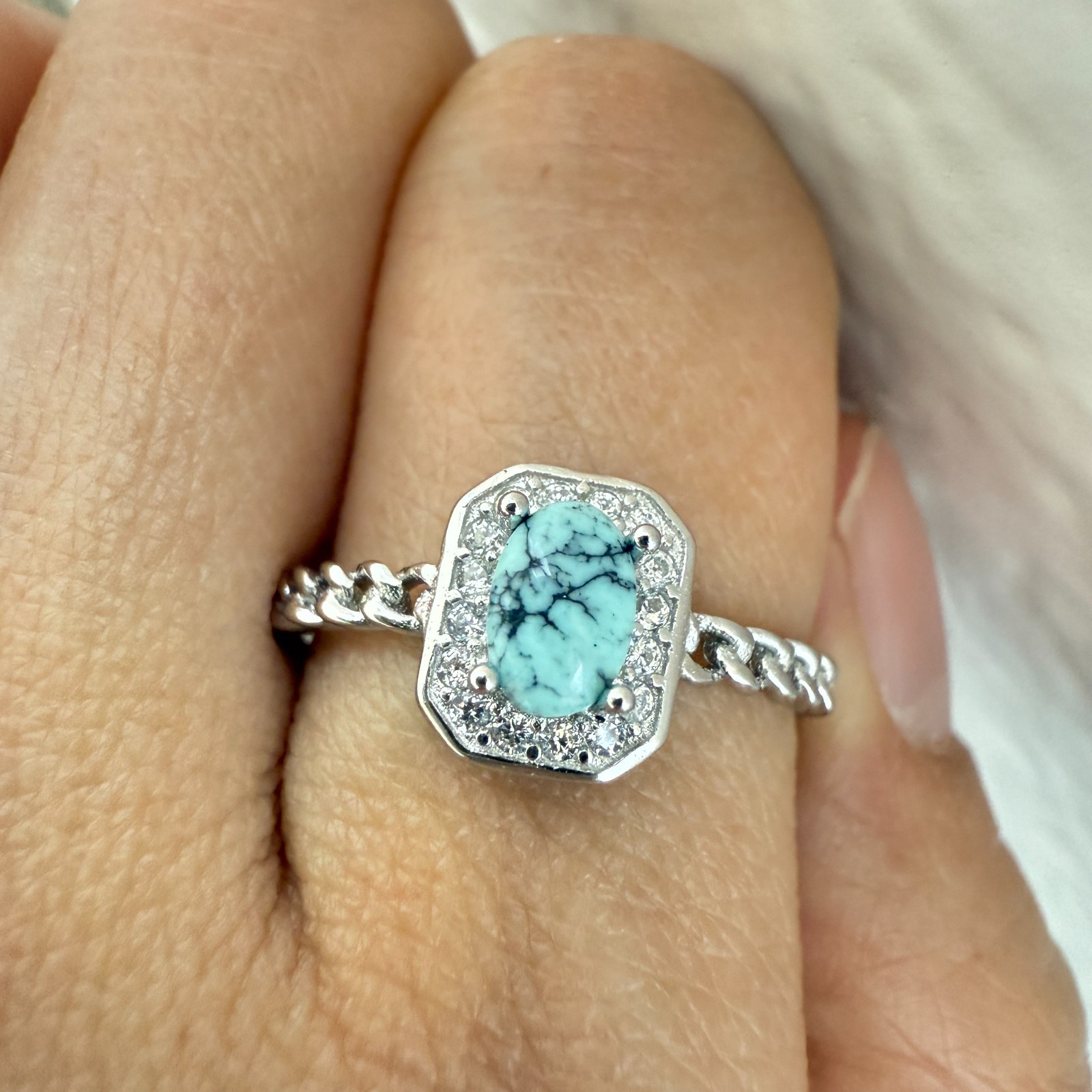 925 Sterling Silver Ring 5x3mm Natural Blue Turquoise Gemstone Zircon Jewelry