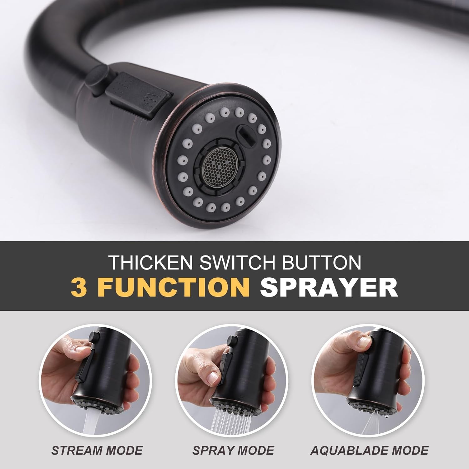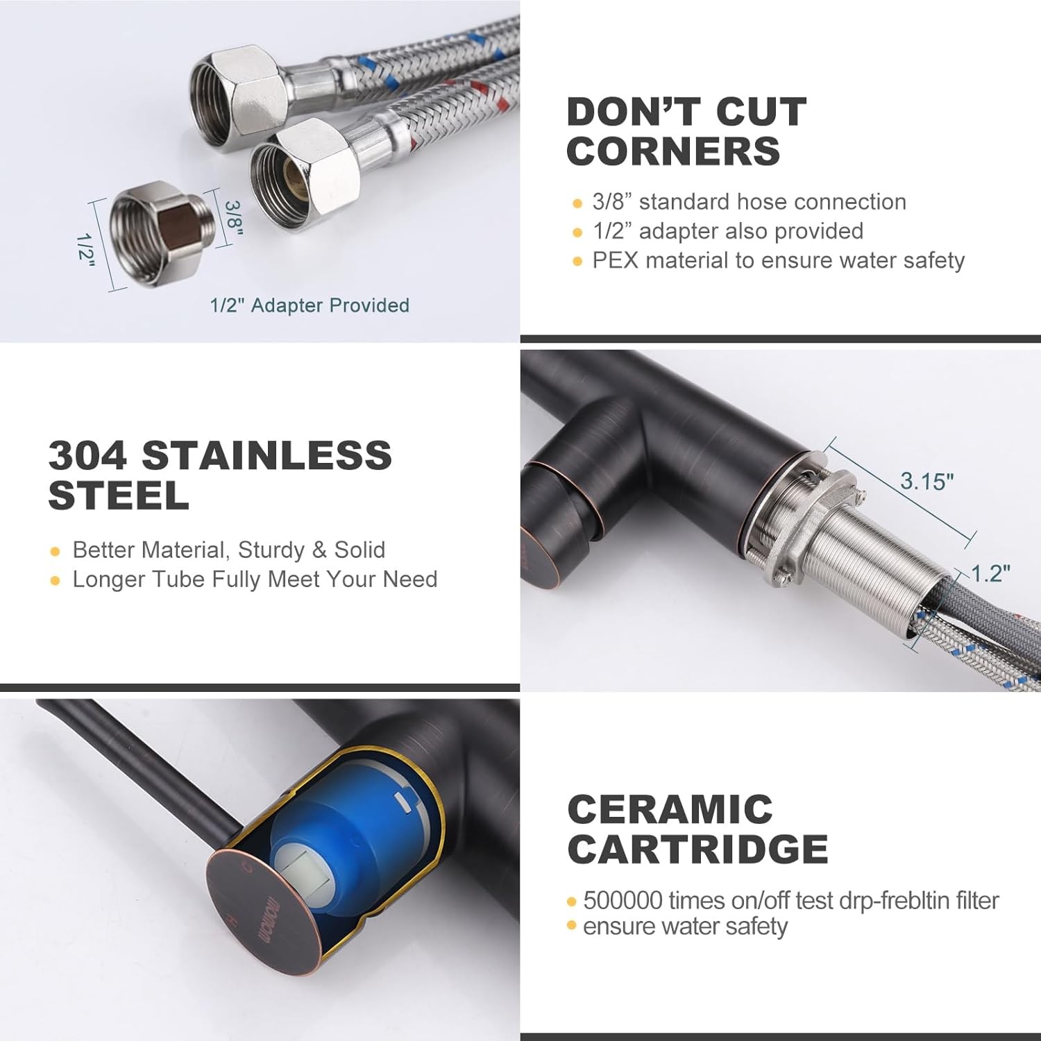 Kitchen Faucet, 304 Stainless Steel, Oiled Rubbed Bronze, High Arc, 360 Swivel,