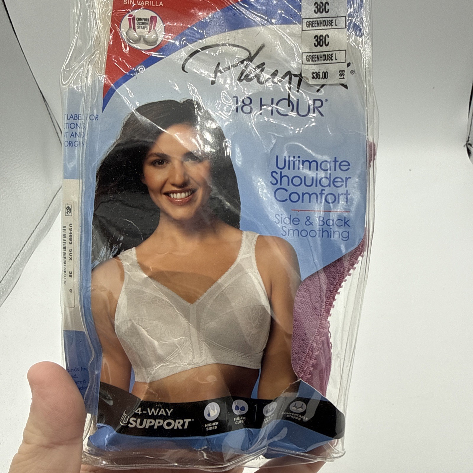 как выглядит Playtex 4693 18 Hour Original Comfort Strap Wirefree Bra Lavender Tint Size 38C фото