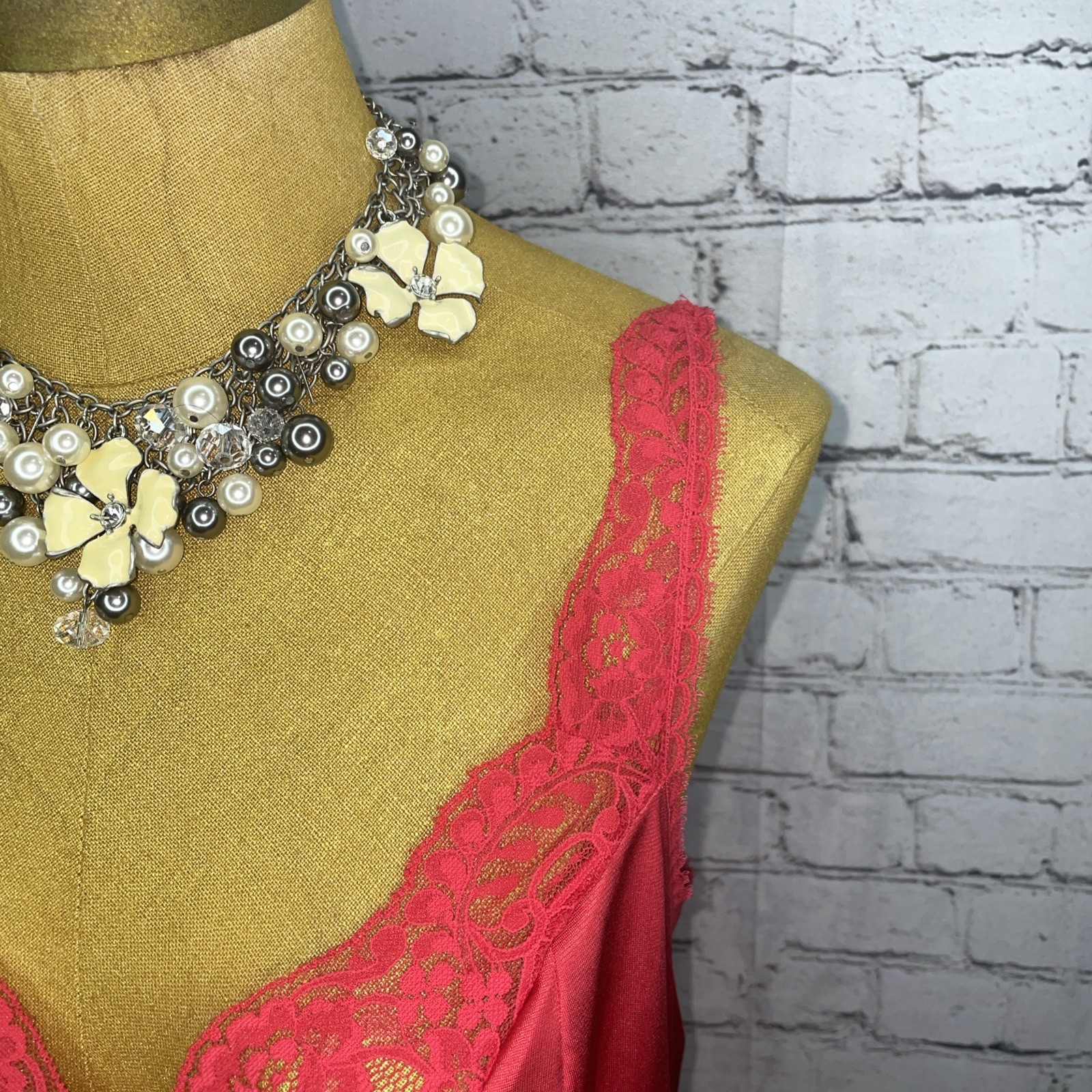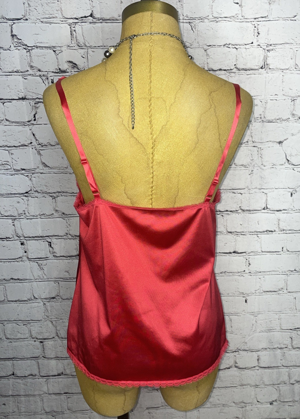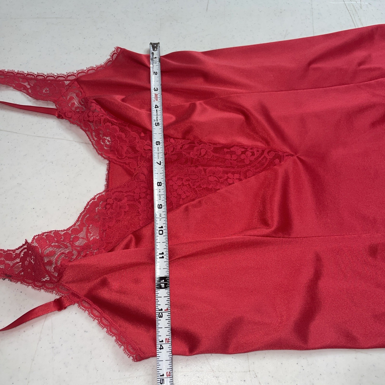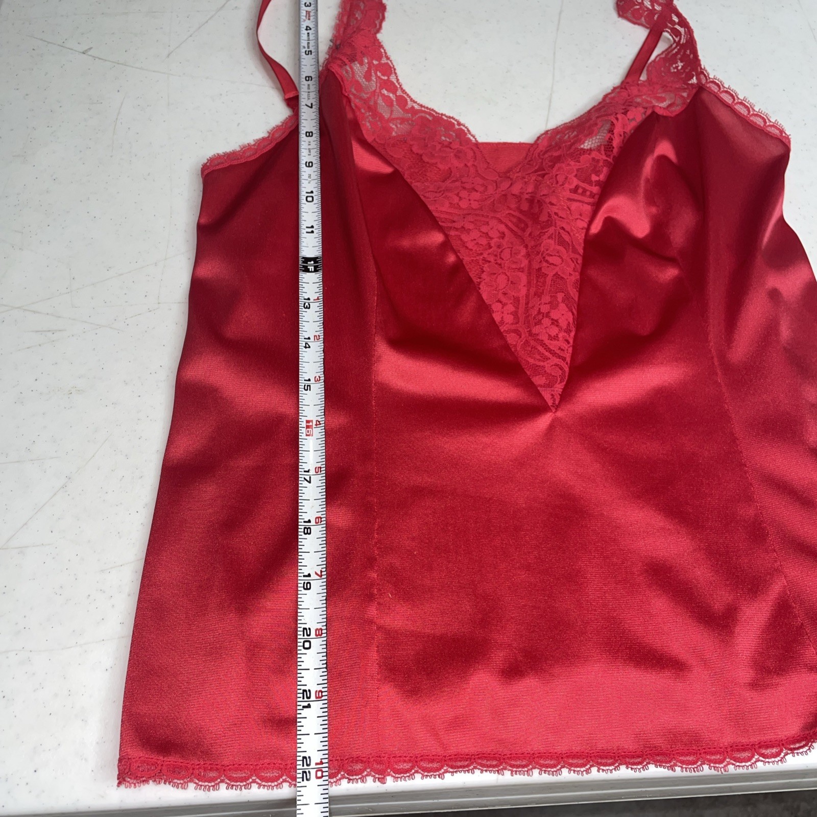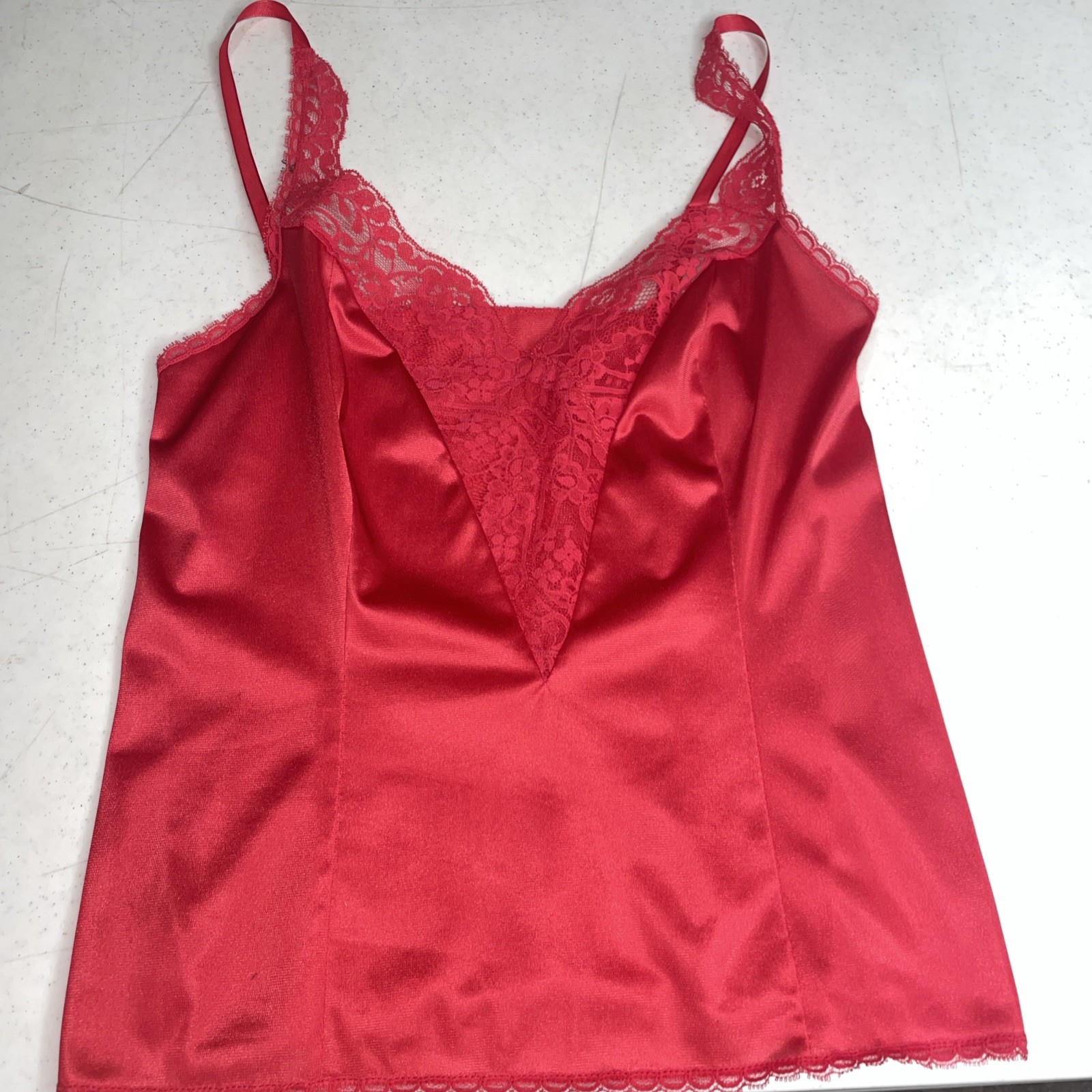 как выглядит Vtg 80s Red Camisole Body Lites JcPenney Nylon Lace Bust Trim Crop Cami 34 фото