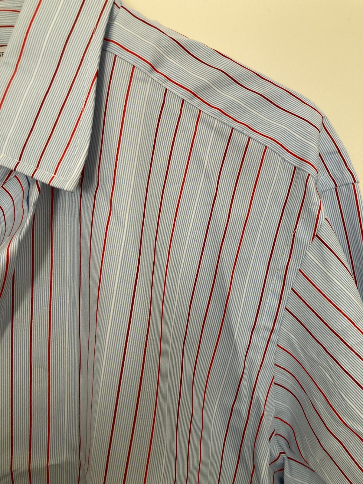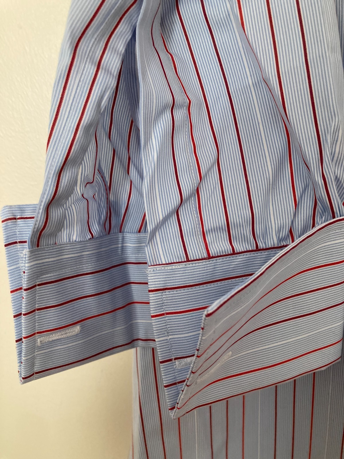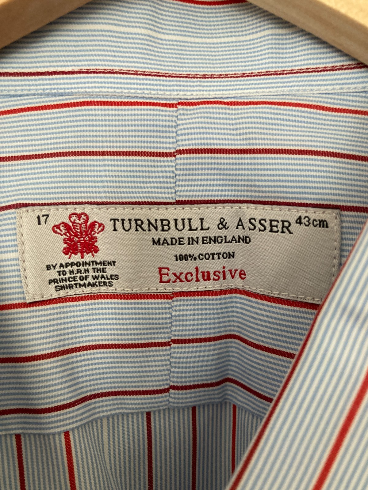 как выглядит euc TURNBULL ASSER Dress Shirt Blue/Red/White Striped French Cuffs 17/43 фото