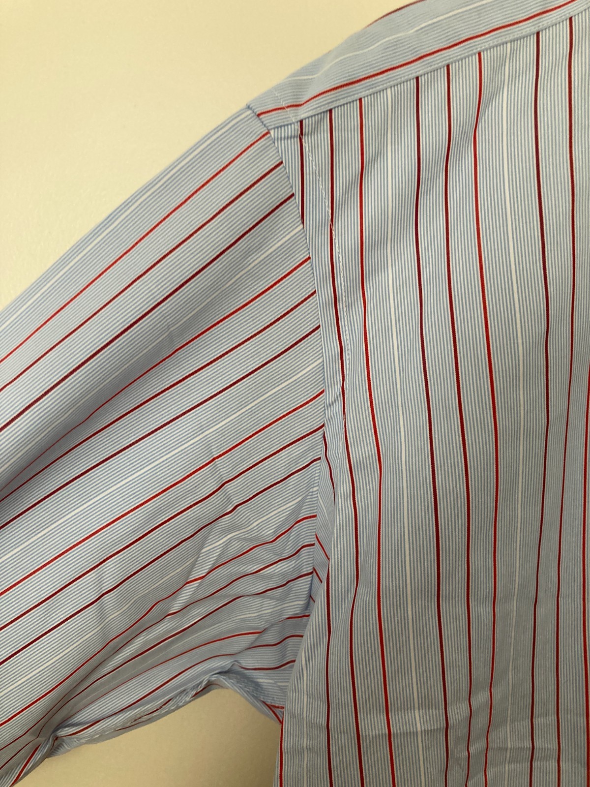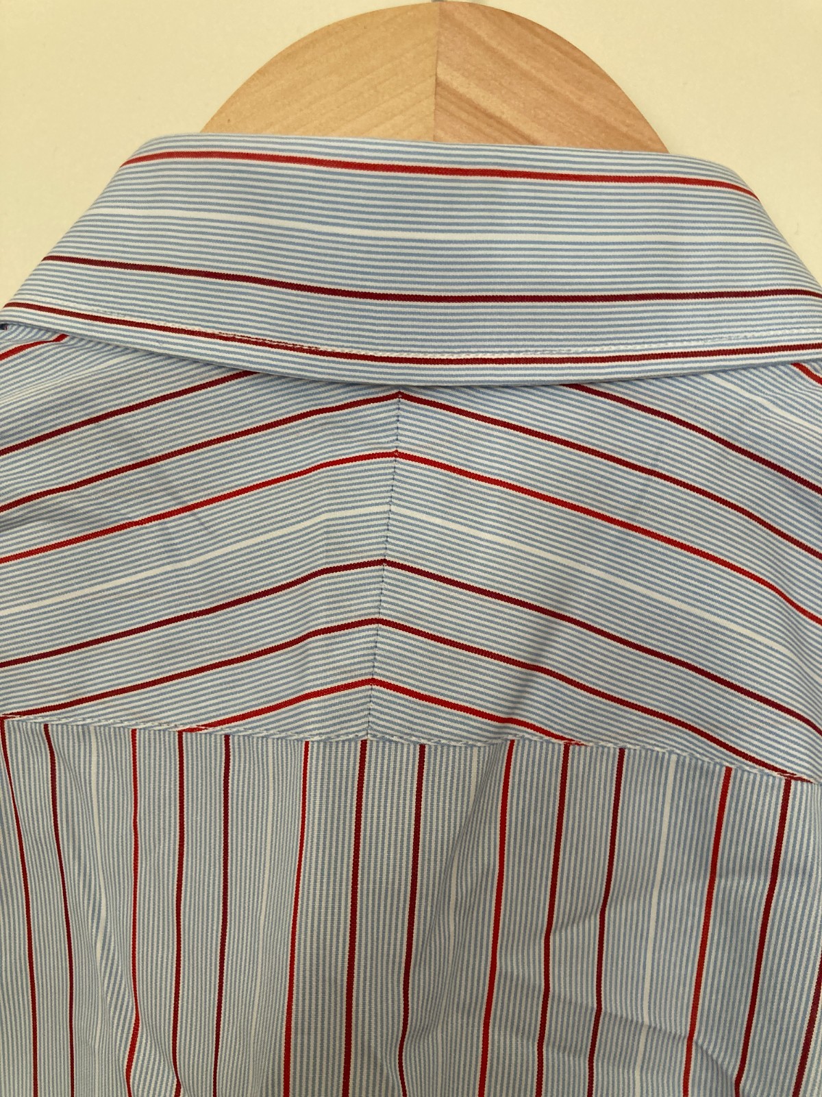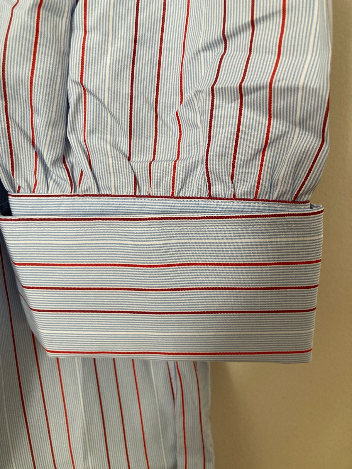 как выглядит euc TURNBULL ASSER Dress Shirt Blue/Red/White Striped French Cuffs 17/43 фото