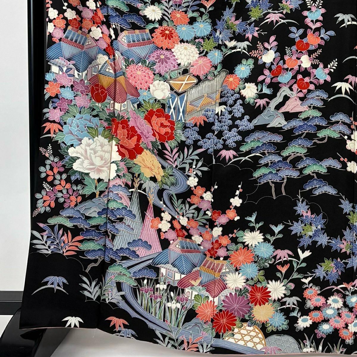 JAPANESE KIMONO FURISODE BLACK 167.5cm 5 ft 6 in PURE SILK FF8669