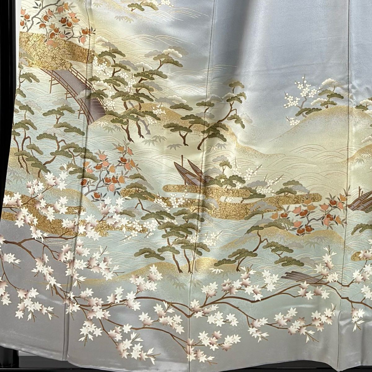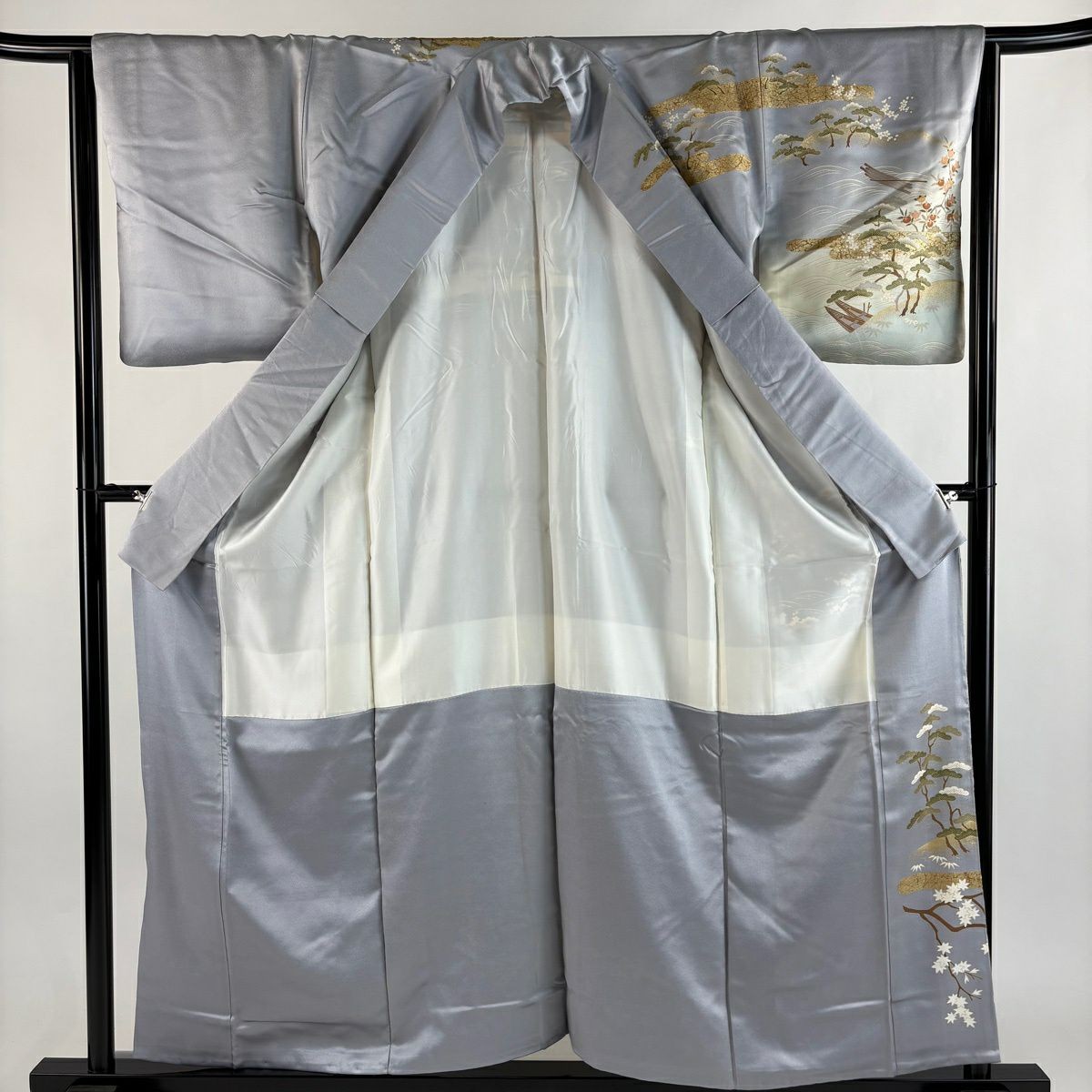 как выглядит JAPANESE KIMONO HOMONGI BLUE-GRAY 156.5cm 5 ft 2 in PURE SILK FF8851 фото