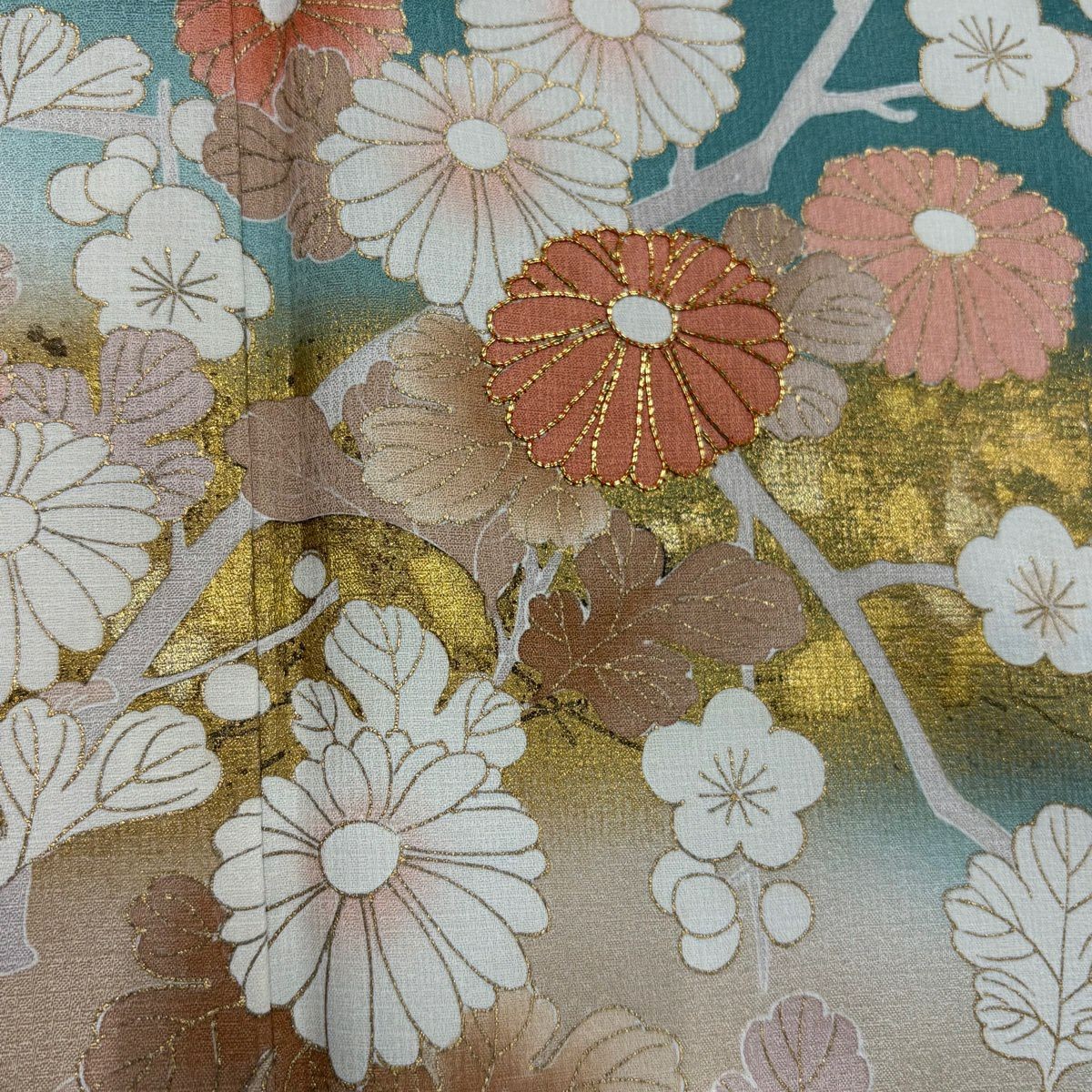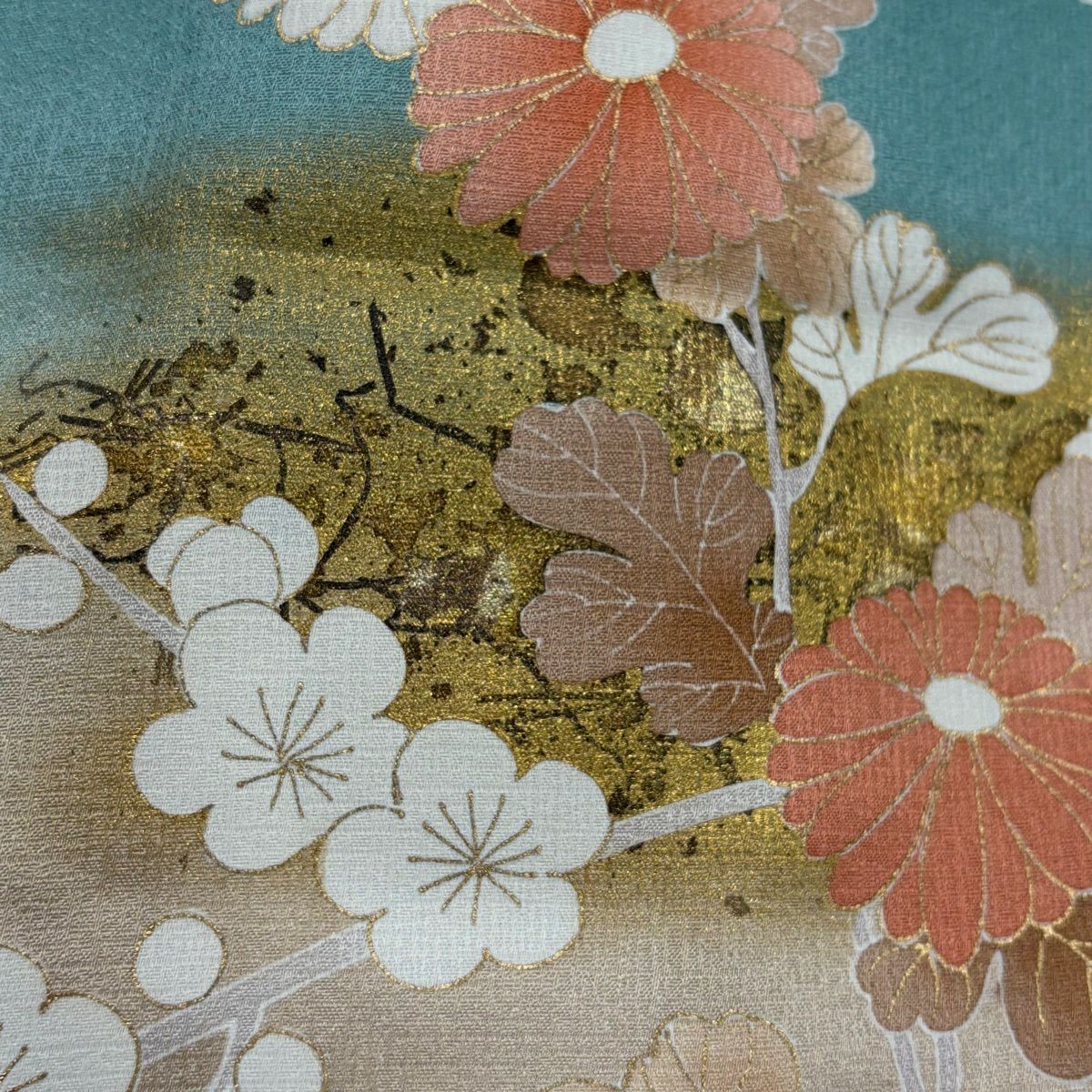 как выглядит JAPANESE KIMONO HOMONGI BLUE-GREEN 171cm 5 ft 7 in PURE SILK FF8905 фото