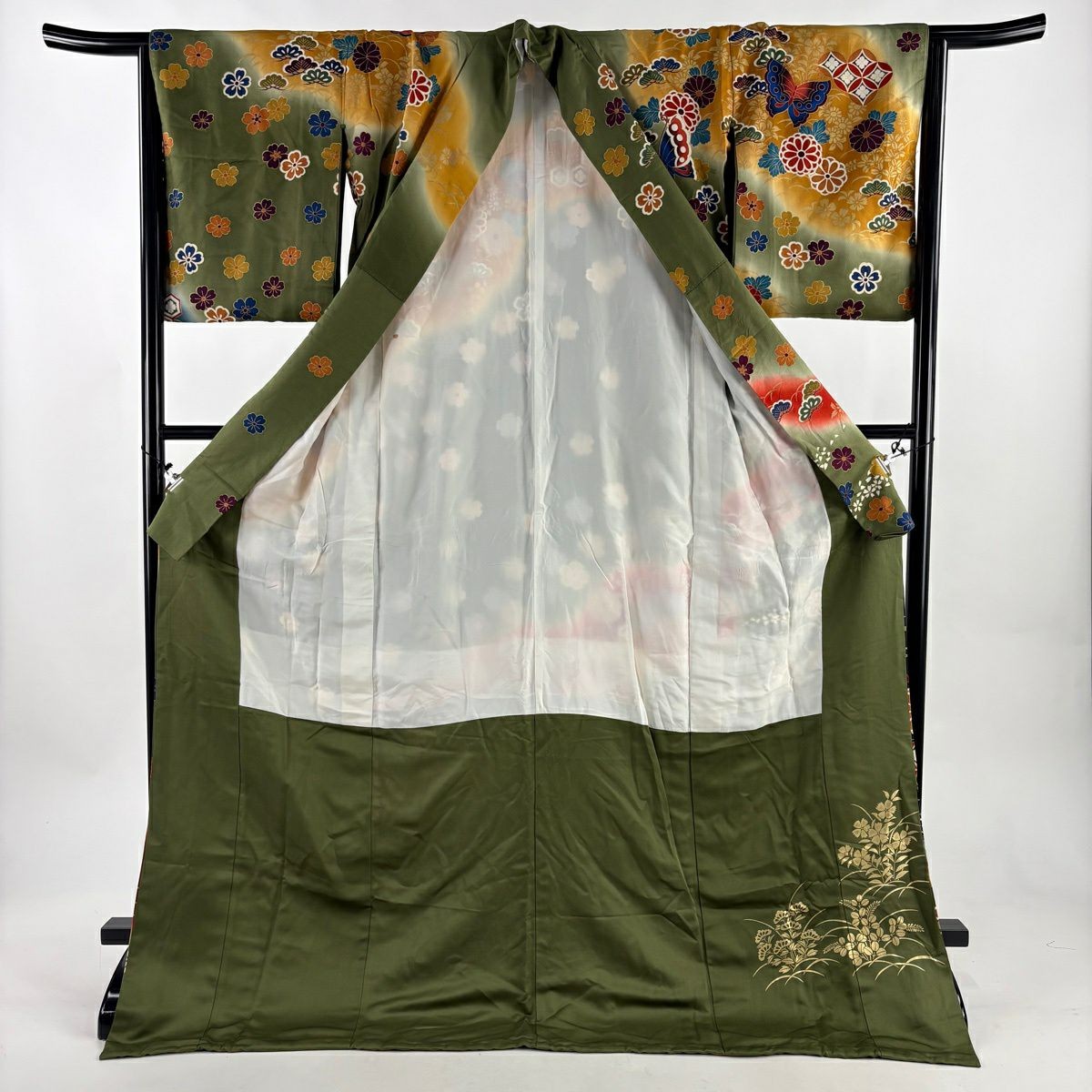JAPANESE KIMONO HOMONGI GREEN 179cm 5 ft 10 in PURE SILK FF9516
