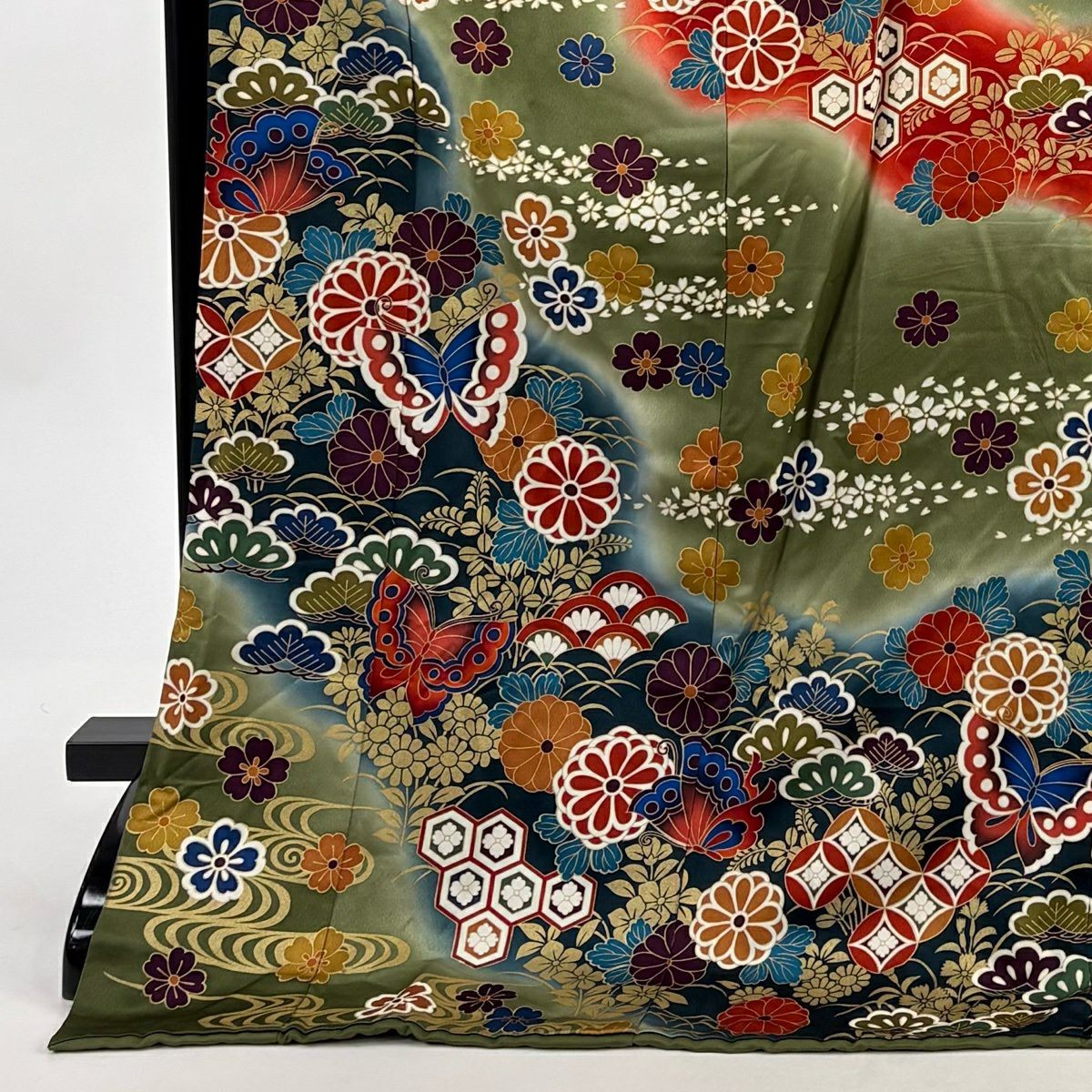 как выглядит JAPANESE KIMONO HOMONGI GREEN 179cm 5 ft 10 in PURE SILK FF9516 фото