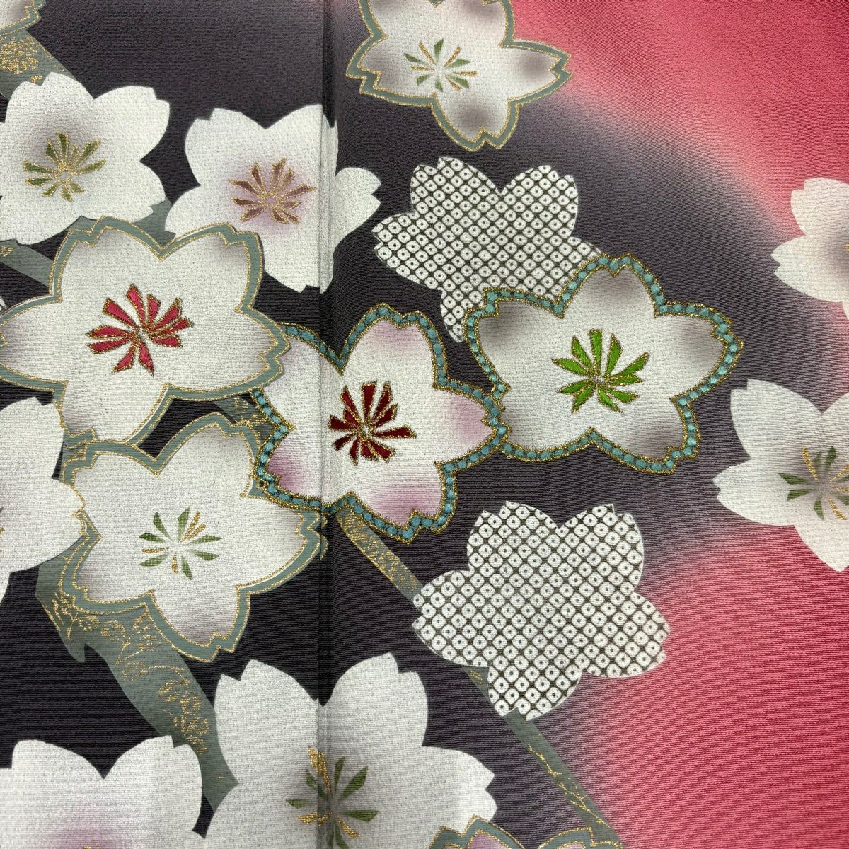 • JAPANESE KIMONO FURISODE DARK PINK 169cm 5 ft 7 in PURE SILK FF10170