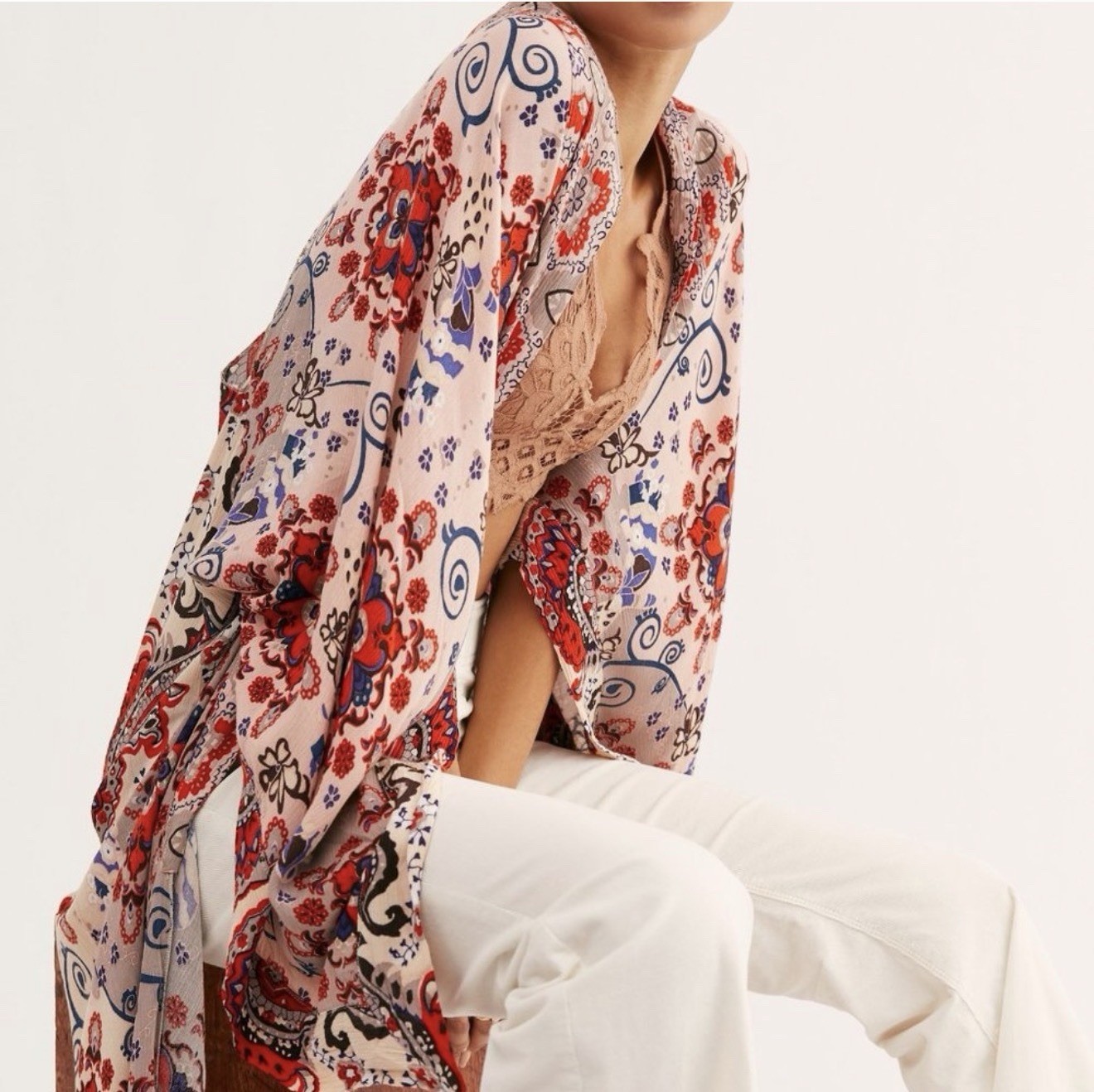 как выглядит Free People Little Wing Mix Front Long Kimono Boho Bohemian Coverup One Size фото