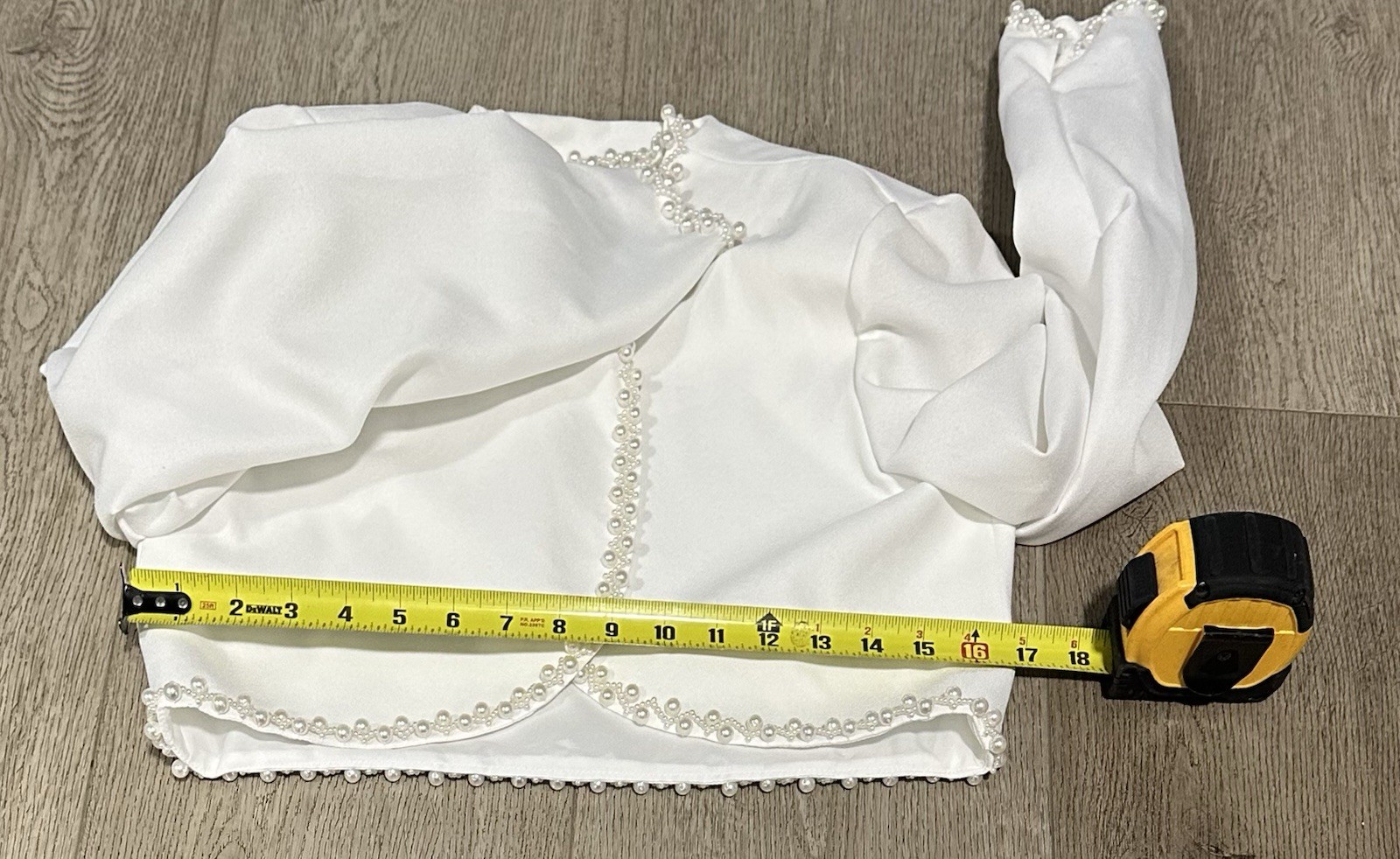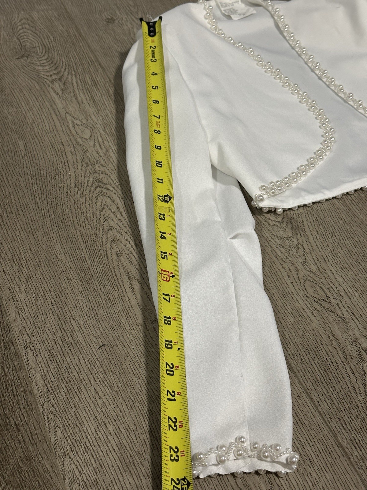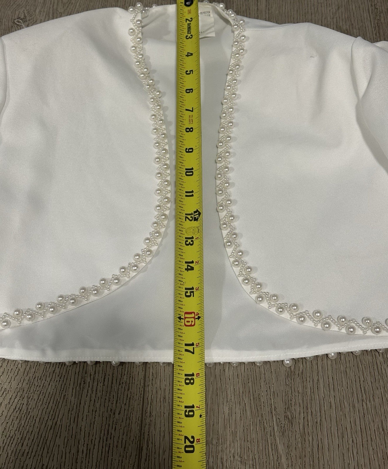 как выглядит White Bridal Bolero Shrug Pearl Trim Long Sleeve Wedding Jacket Size 10 фото