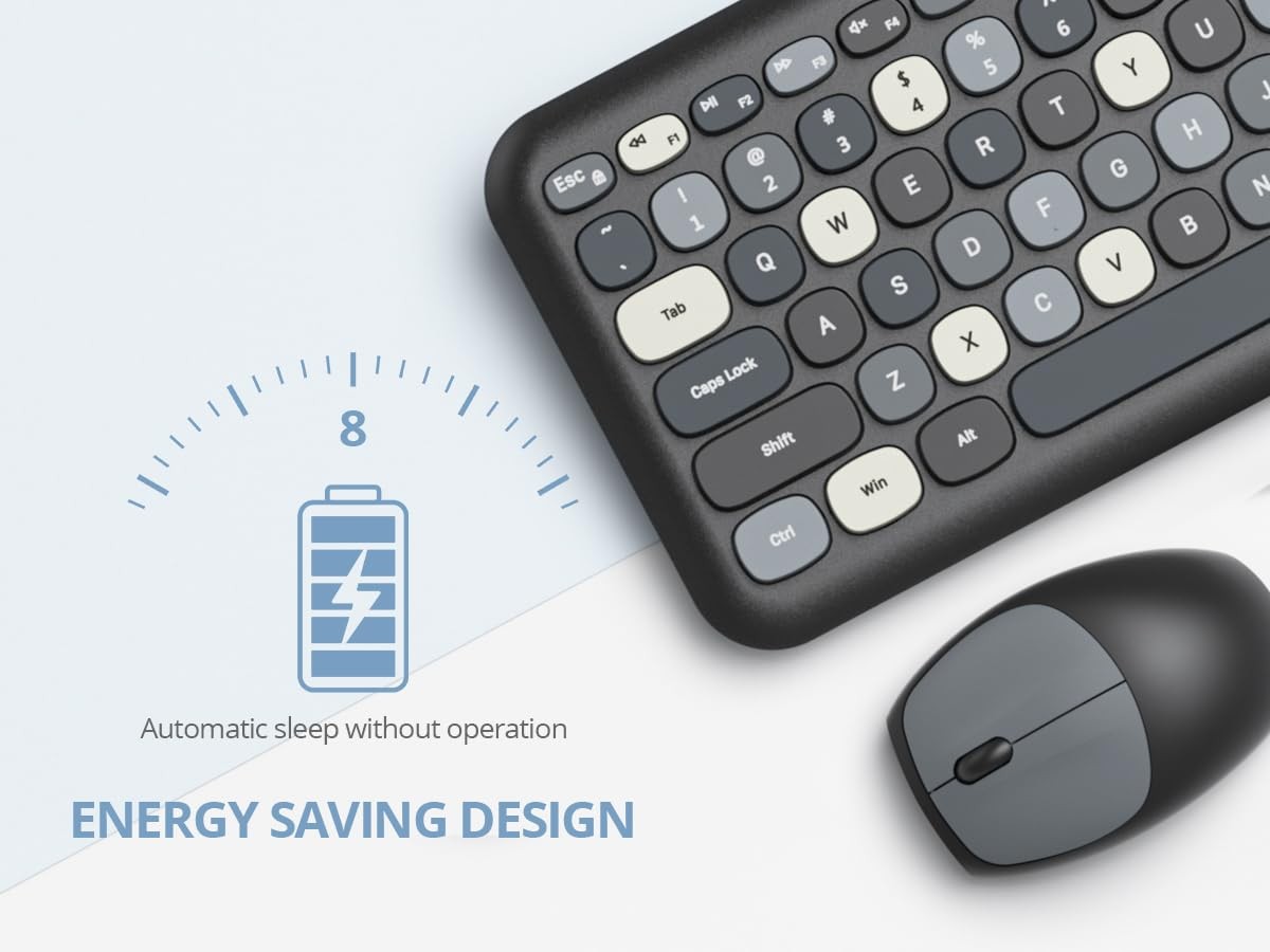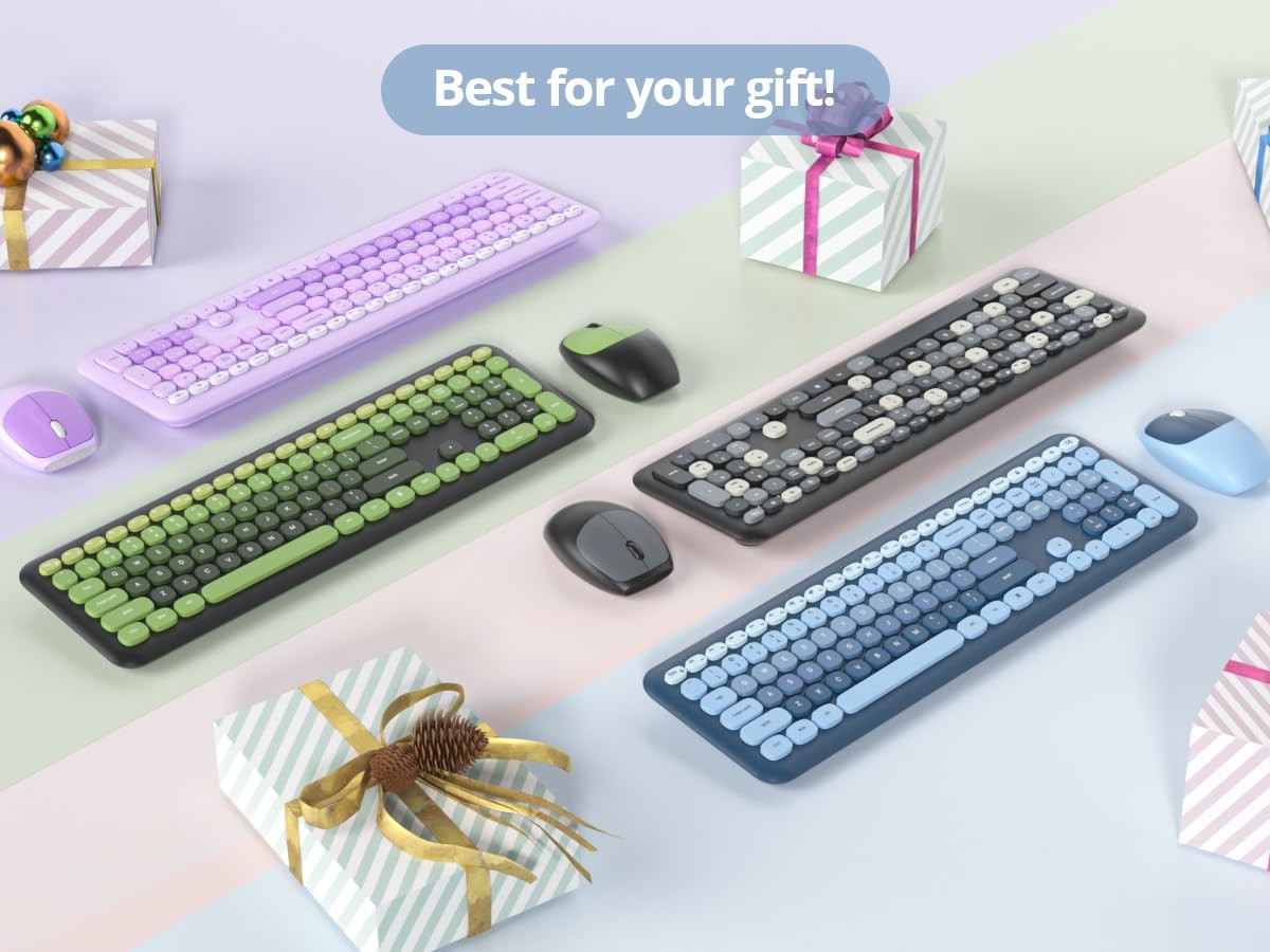 Black White Wireless Keyboard and Combo, 2.4GHz Typewriter Keyboard, Full Siz...