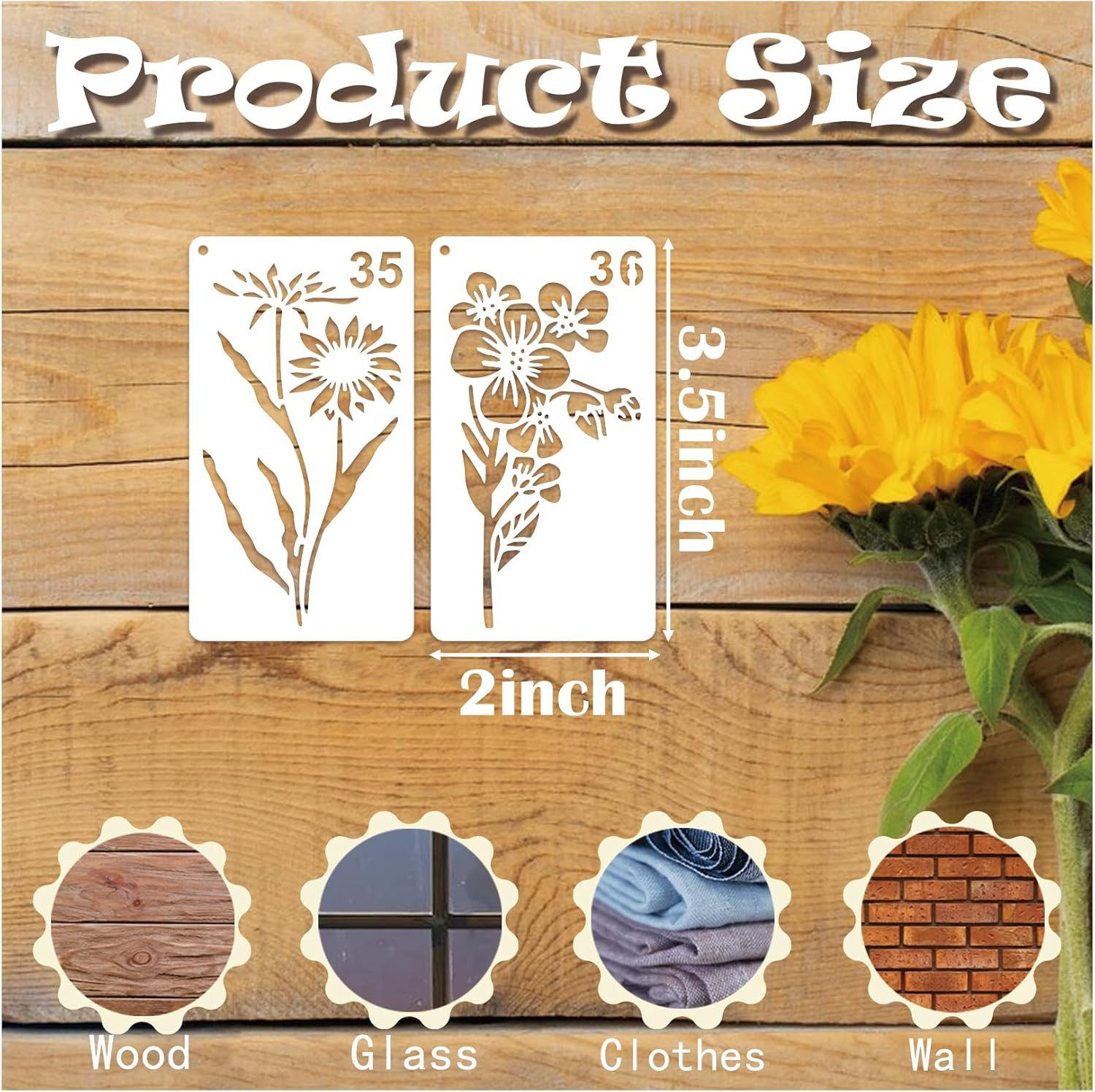 60Pcs Small Floral Stencils for Painting and Crafts - Botanical Leaf Templates