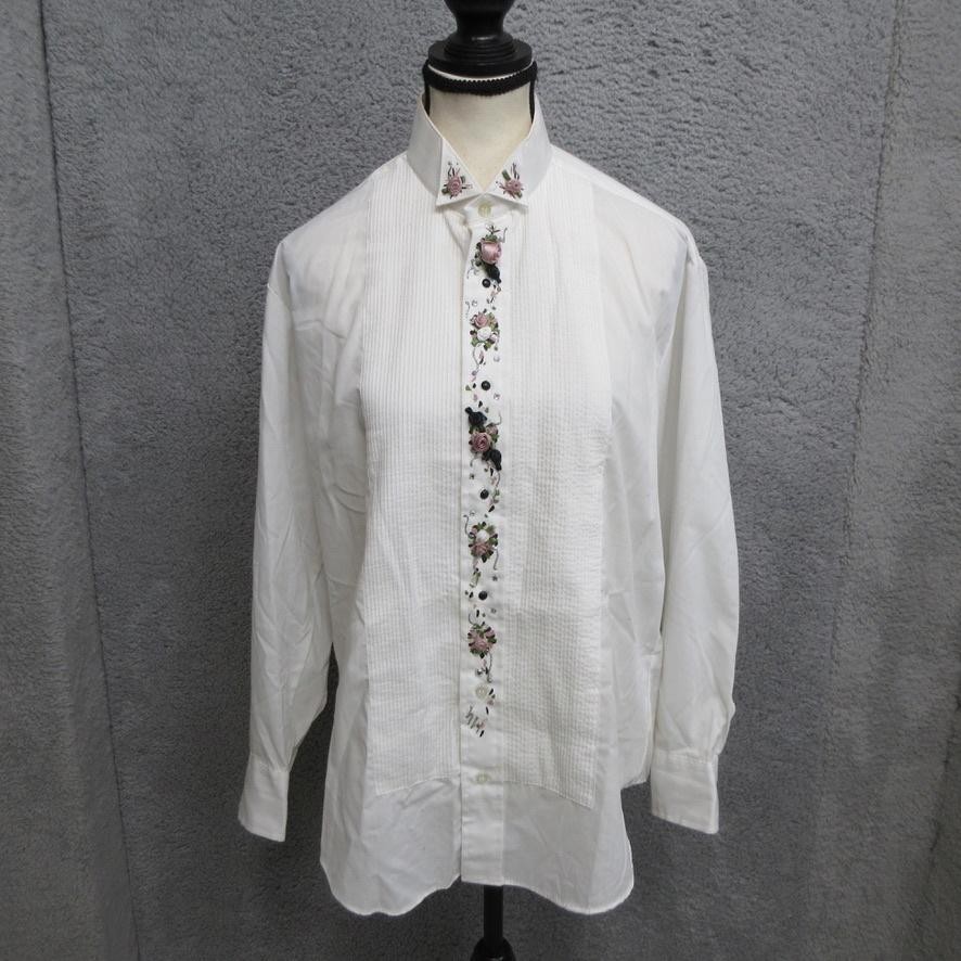 как выглядит Vintage 80s Neil Allyn Tuxedo Shirt Womens Medium 30/31 White Pleated Bib Floral фото