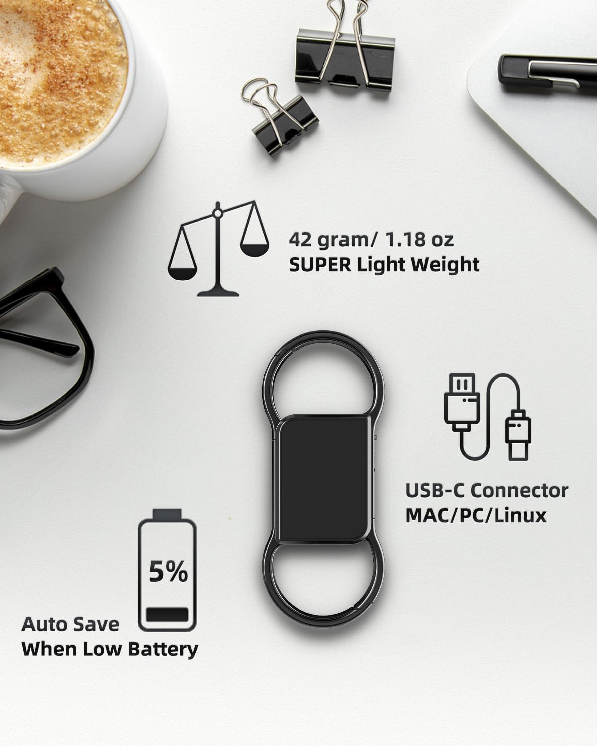 64GB Voice Activated Recorder with AI - 800 Hours Storage, 30 Hour Battery, MP3
