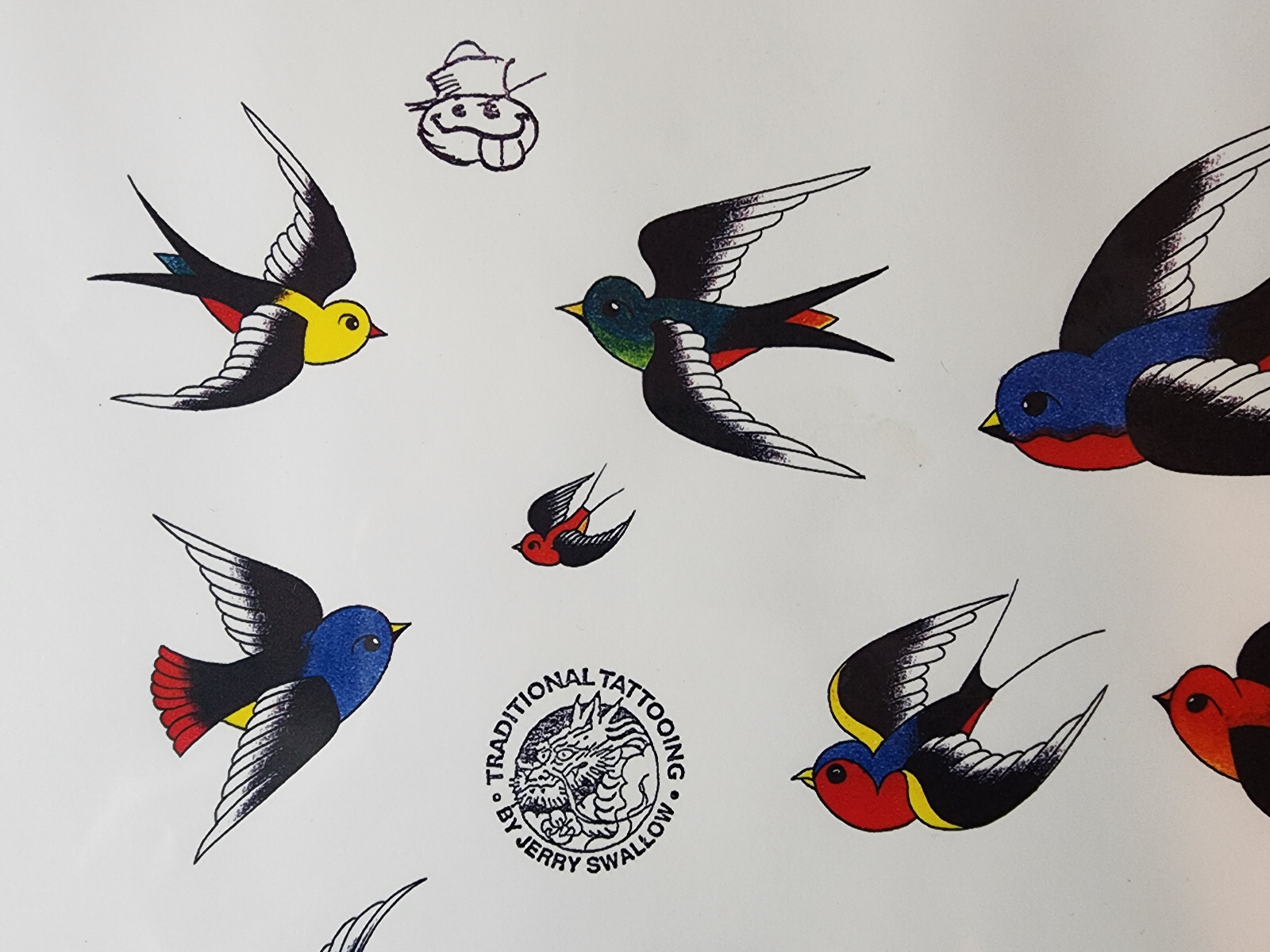 как выглядит Sailor Jerry Swallow Traditional Vintage Style Tattoo Flash Sheet 11x14" 1997 6 фото