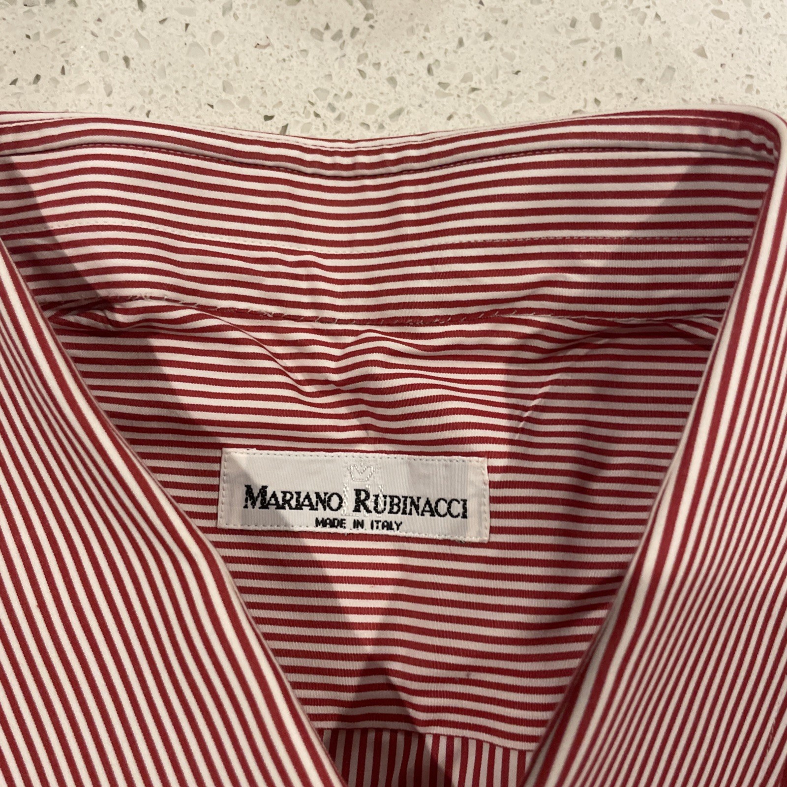 как выглядит Mariano Rubinacci Italian Luxury Handmade Red Striped Button Up Dress Shirt XL фото