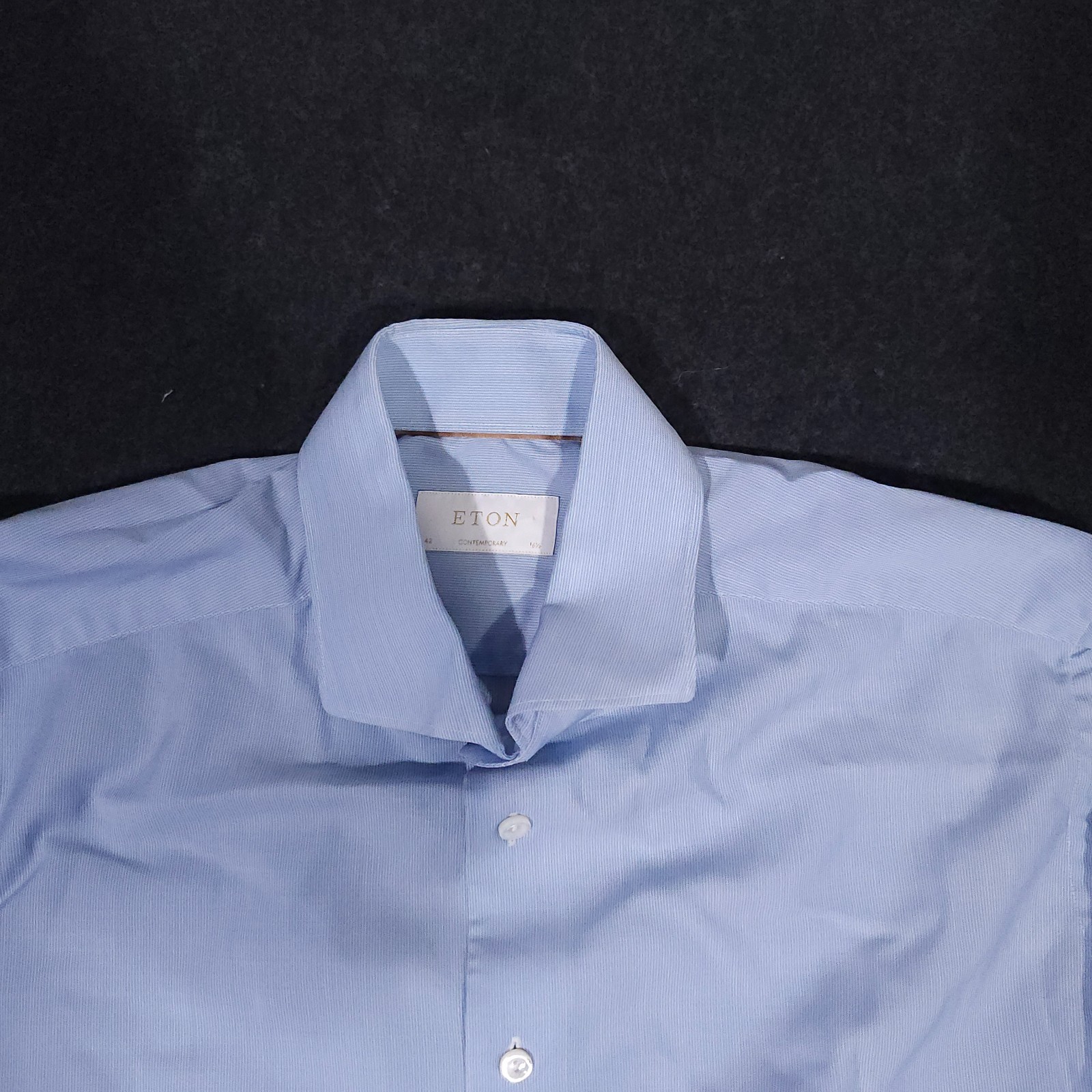 как выглядит Eton 100 Wool Dress Shirt Mens 42-16.5 Blue Contemporary Long Sleeve Button Up фото