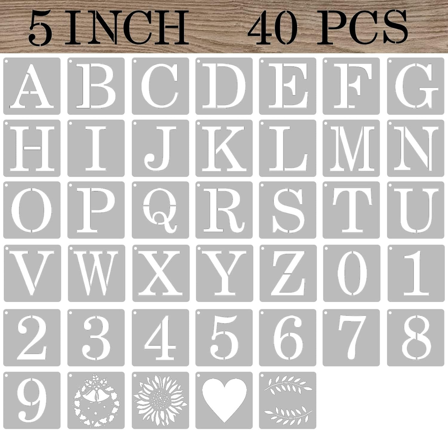 5 Inch Letter Stencils Numbers Craft Stencils, 40 Pcs Reusable Plastic Alphabet