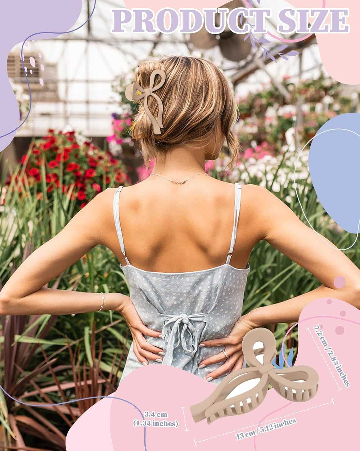 4 Pcs Large Bow Hair Clips, Nonslip Claw Clips, Black, Dark Brown, Khaki, Light